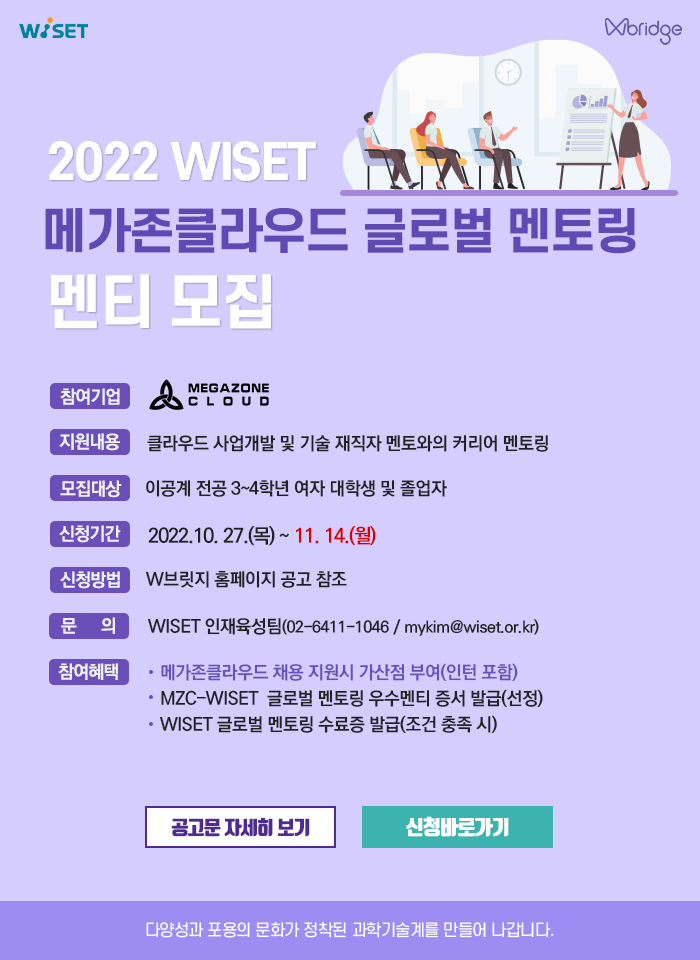 [WISET] 메가존클라우드 글로벌 멘토링 참여자 모집 홍보 안내