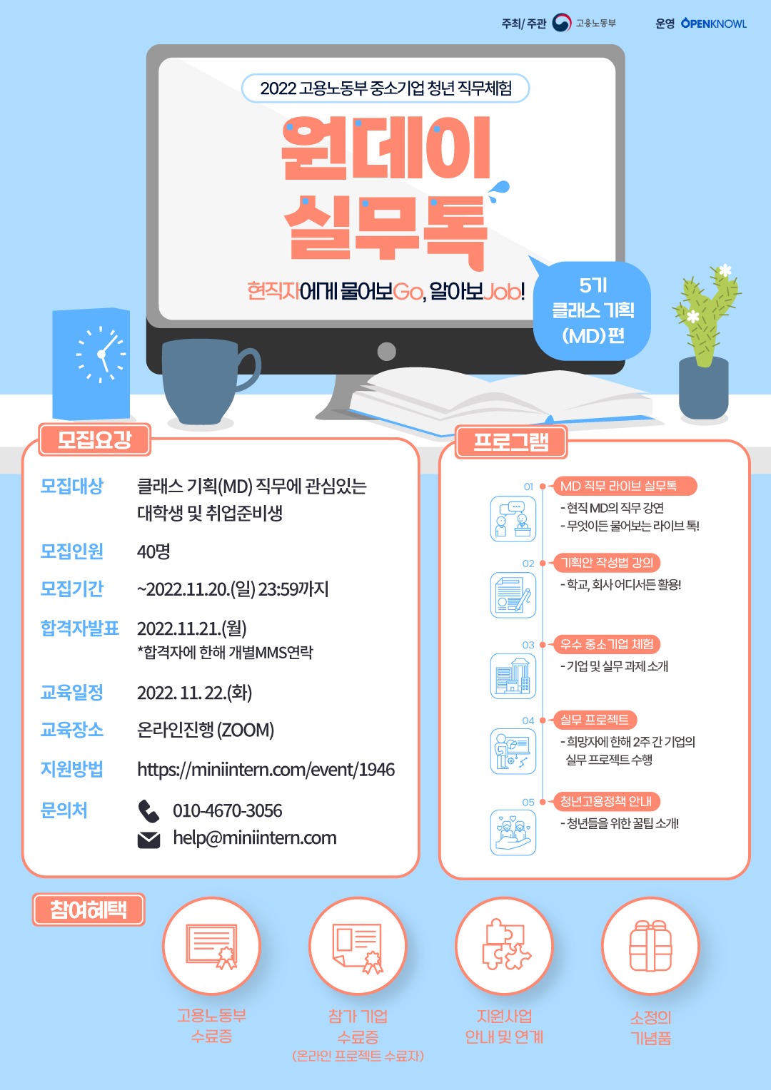 [고용노동부] 홈트레이닝 클래스 기획하고 온라인 MD 직무 취업까지! [원데이실무톡]에서 현직 MD의 꿀팁까지 얻어보세요! (~11/20)