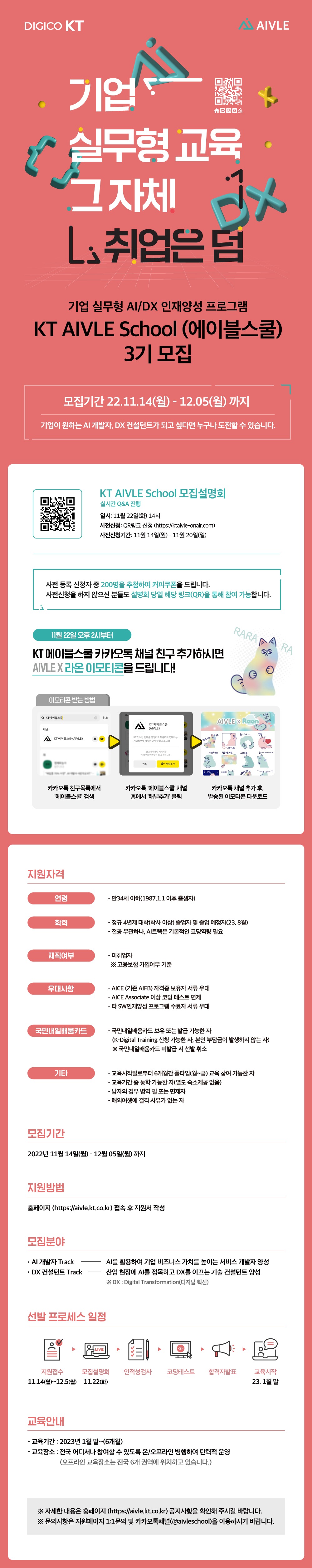 ※ 자세한 내용은 홈페이지(https://aivle.kt.co.kr) 공지사항을 확인해 주시길 바랍니다.