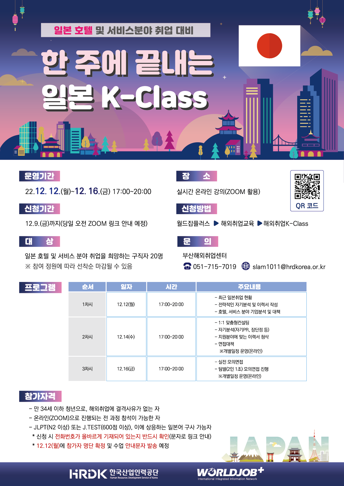 [한국산업인력공단 부산해외취업센터] '22년 12월 k-class 일본 서비스분야 취업대비 취업가이드 과정(온라인) 참가자 모집 안내