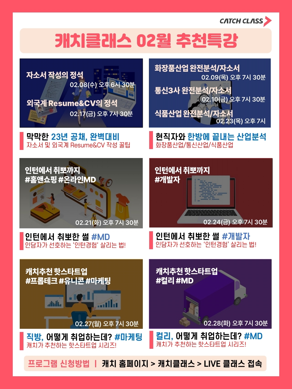 [진학사 CATCH] 캐치클래스 2월 무료 취업 특강 참가자 모집 안내