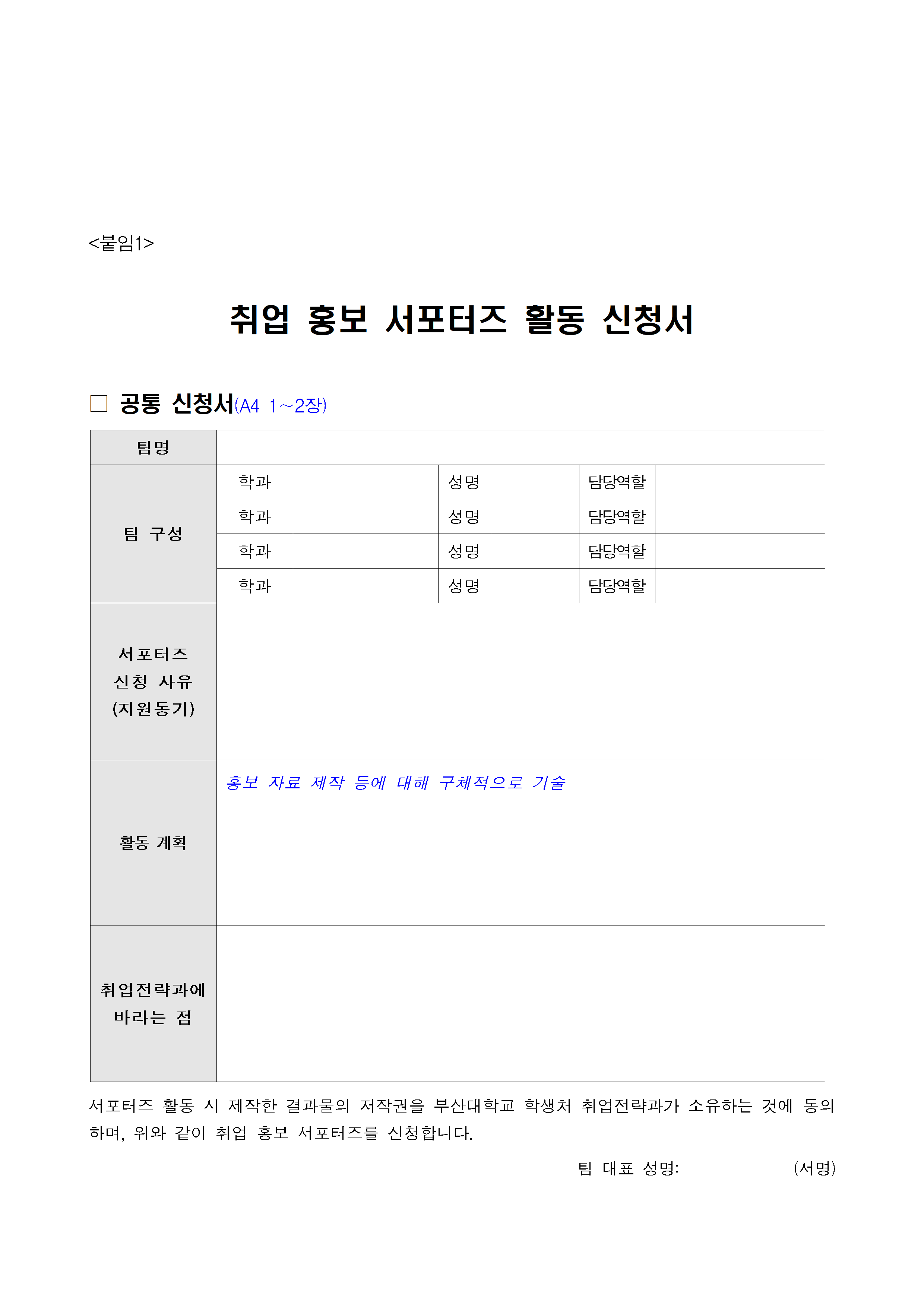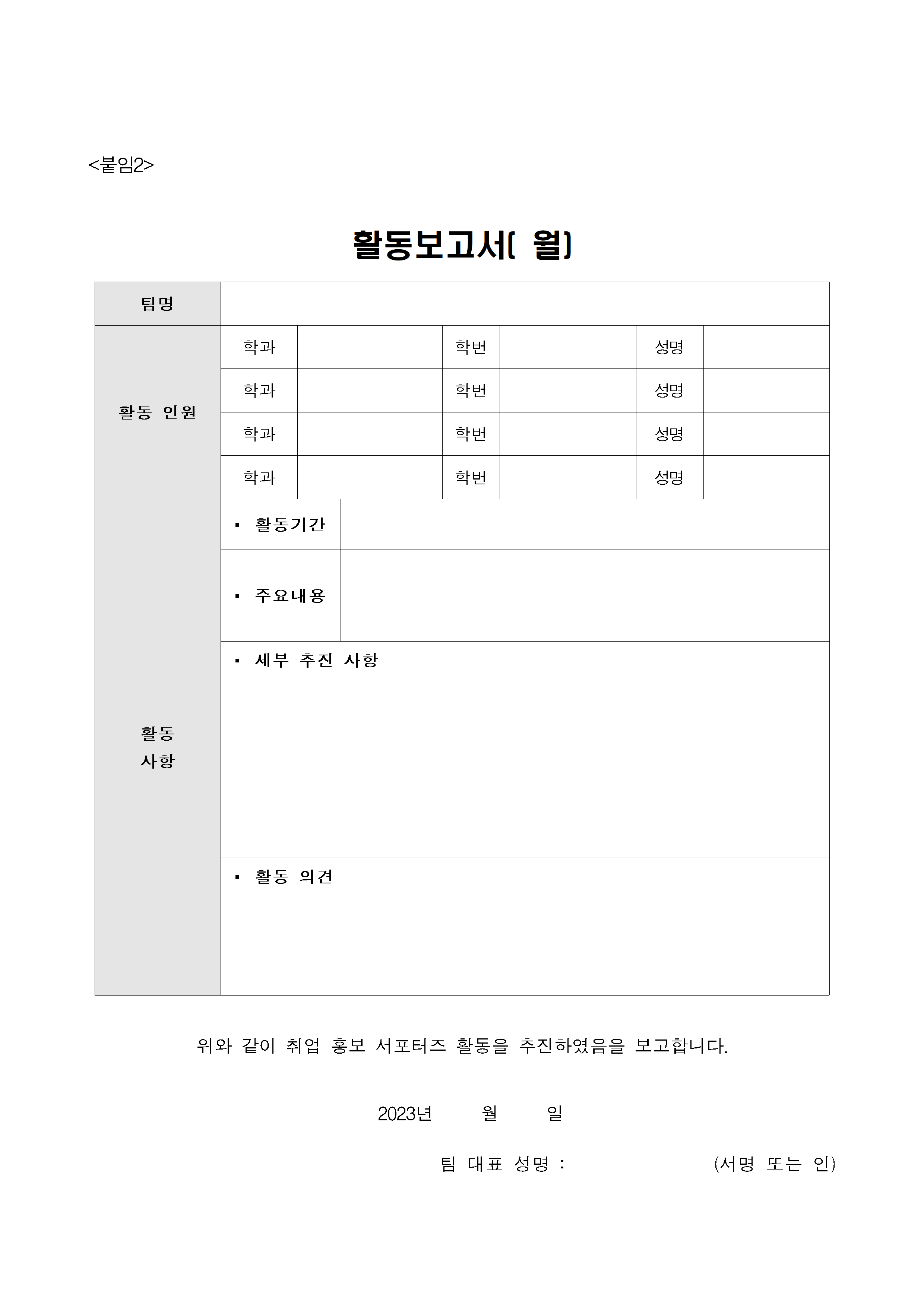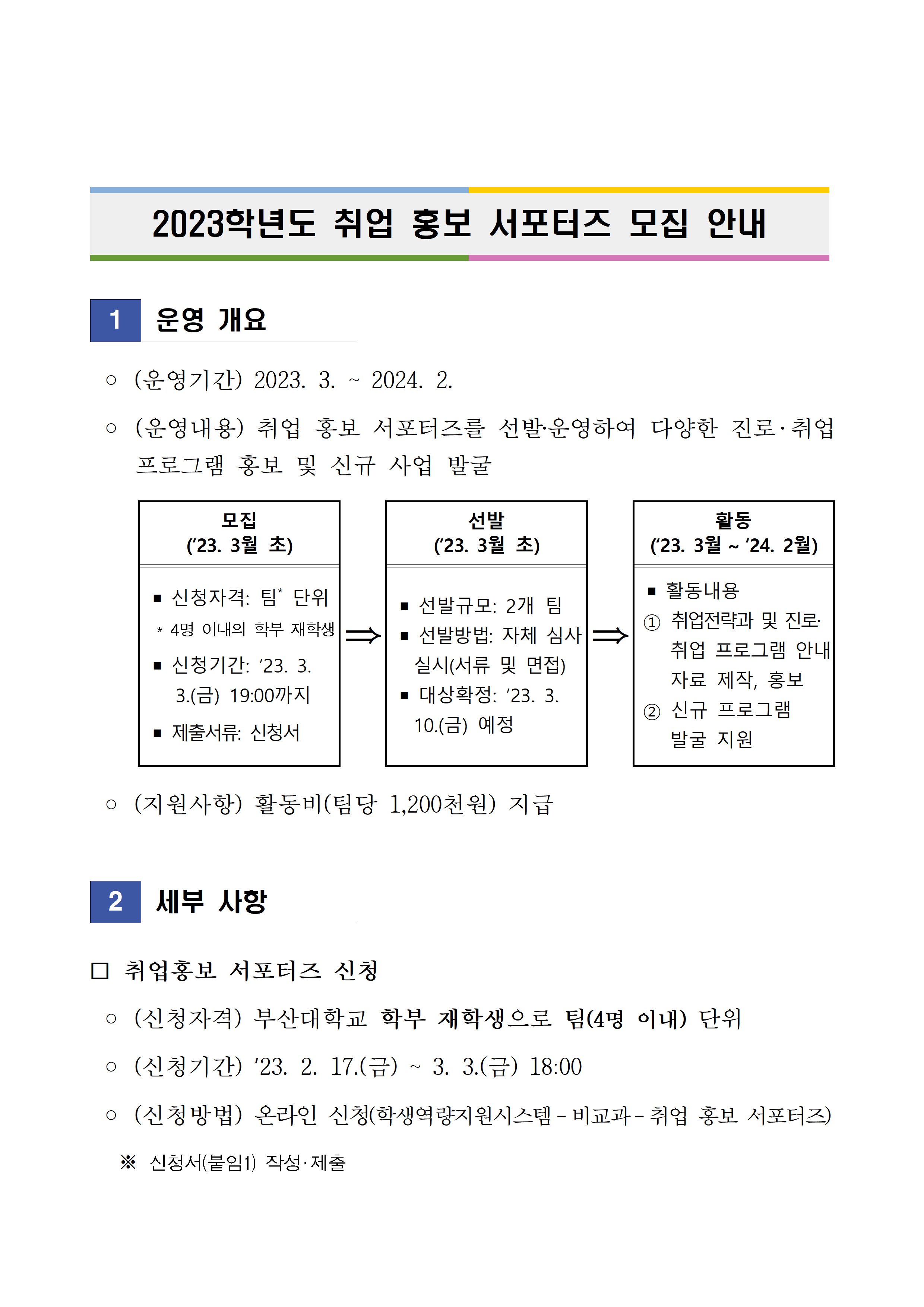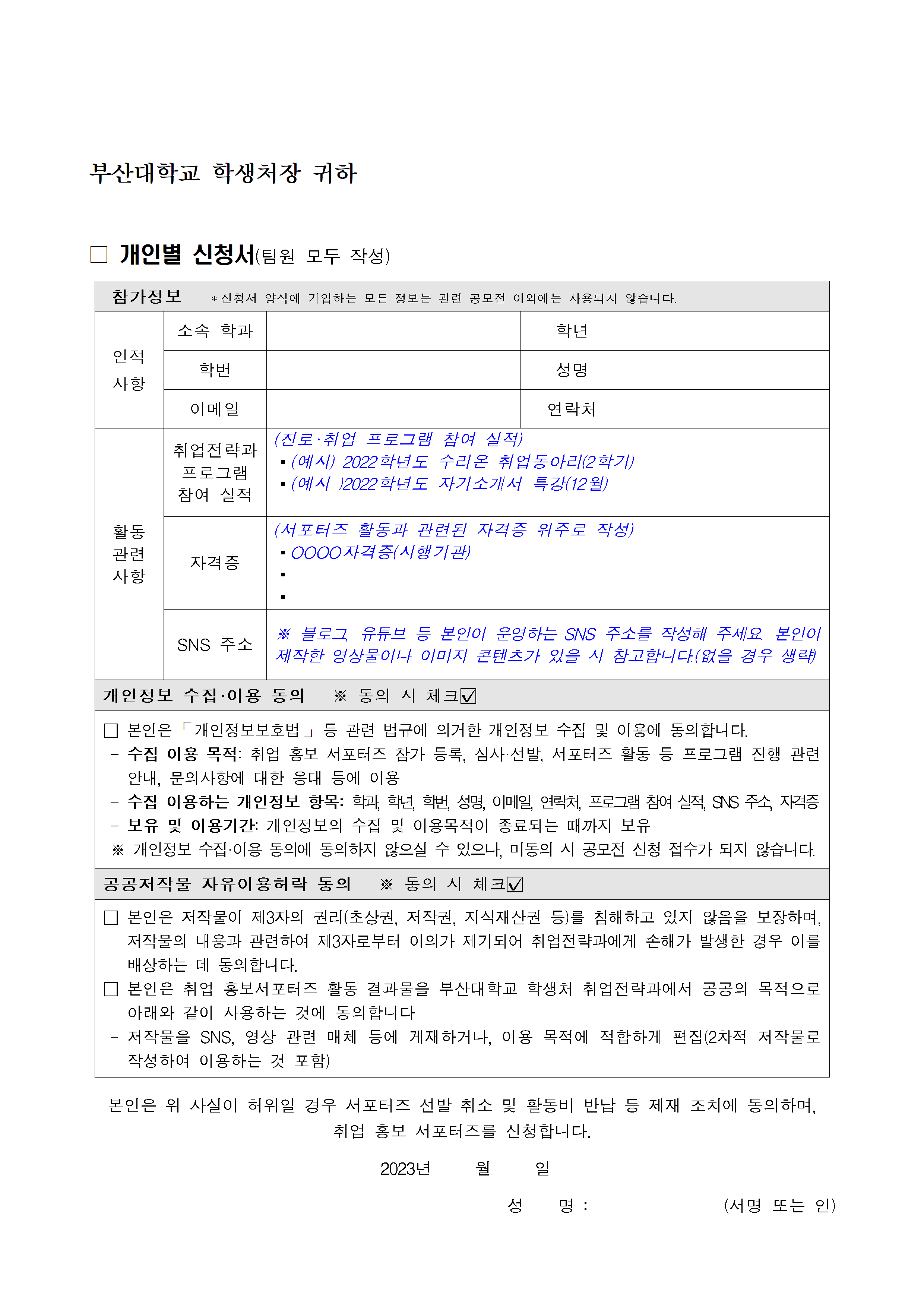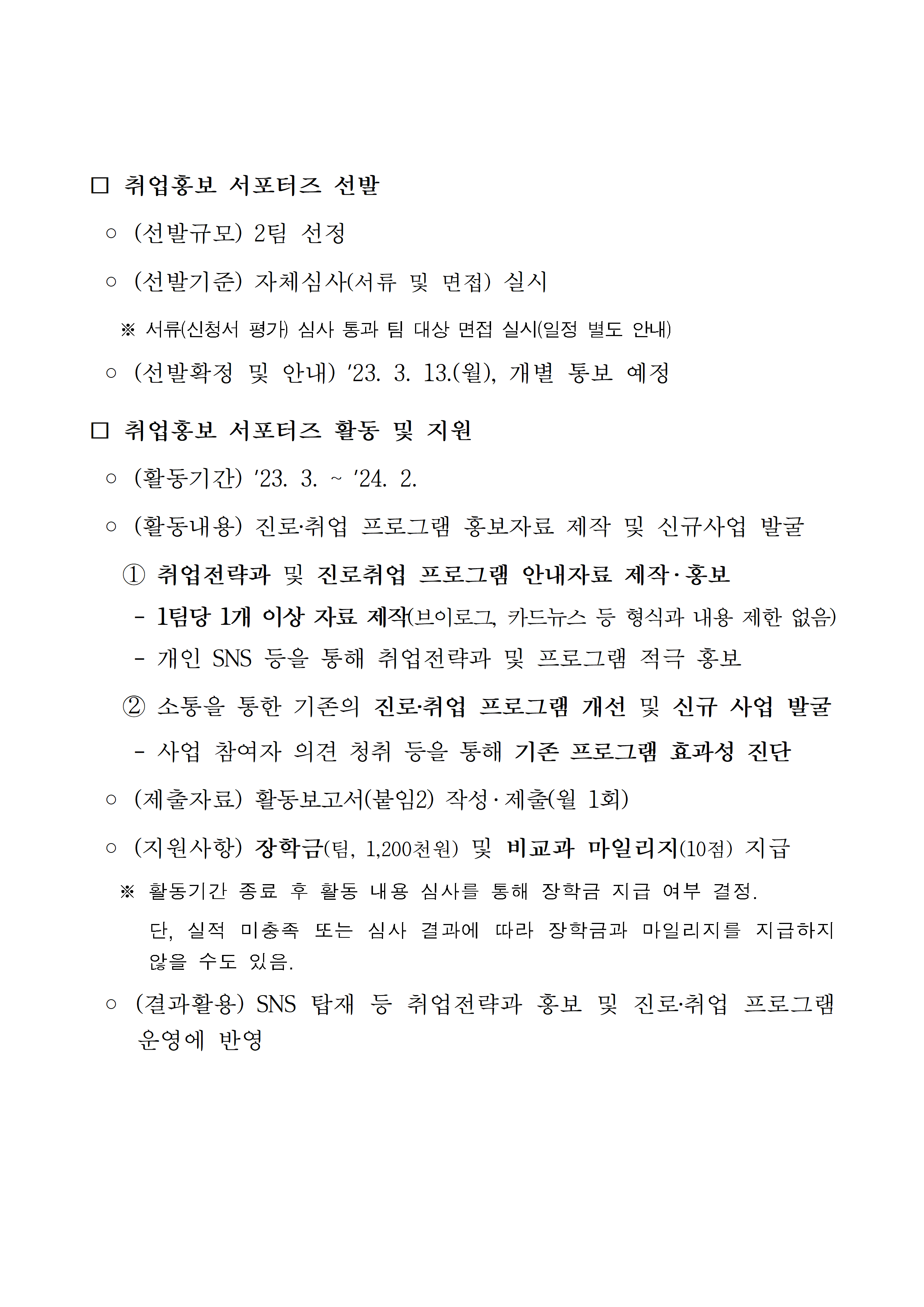 붙임 2023학년도 취업 홍보 서포터즈 안내문(신청서 등 양식 포함) 1부. 끝.