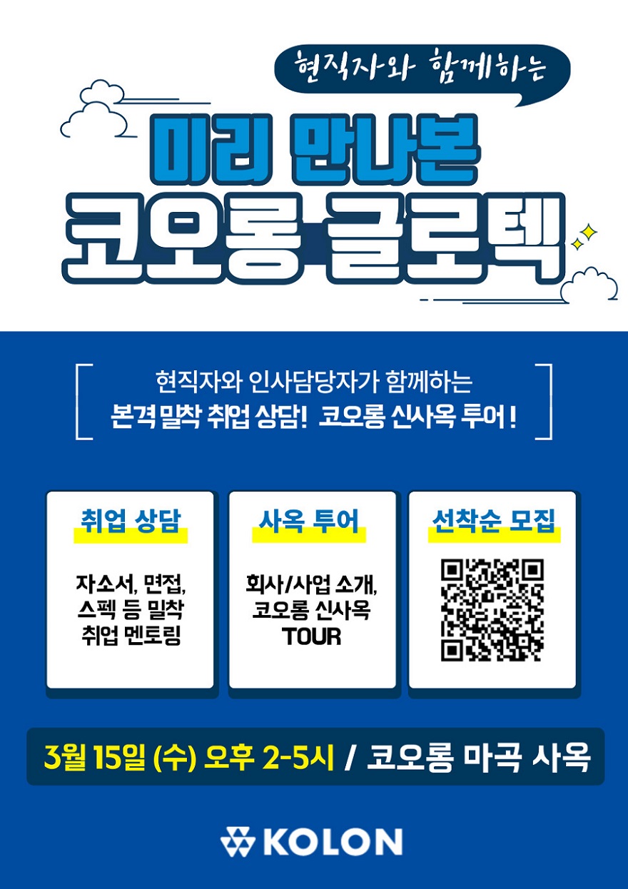 채용 상담회인 ‘미리 만나본 코오롱글로텍’은 입사 지원, 또는 면접 준비간