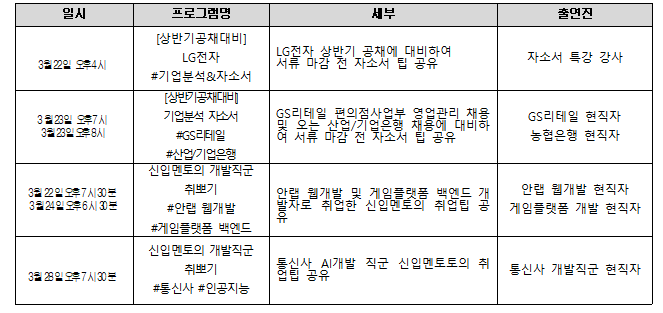 - 참가대상 : 해당 대학교 취업을 준비하는 인원 모두