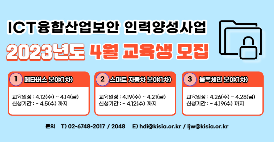<[모집중] ICT융합산업보안 인력양성사업 4월 교육생 모집(~4/5, ~4/12, ~4/19)>