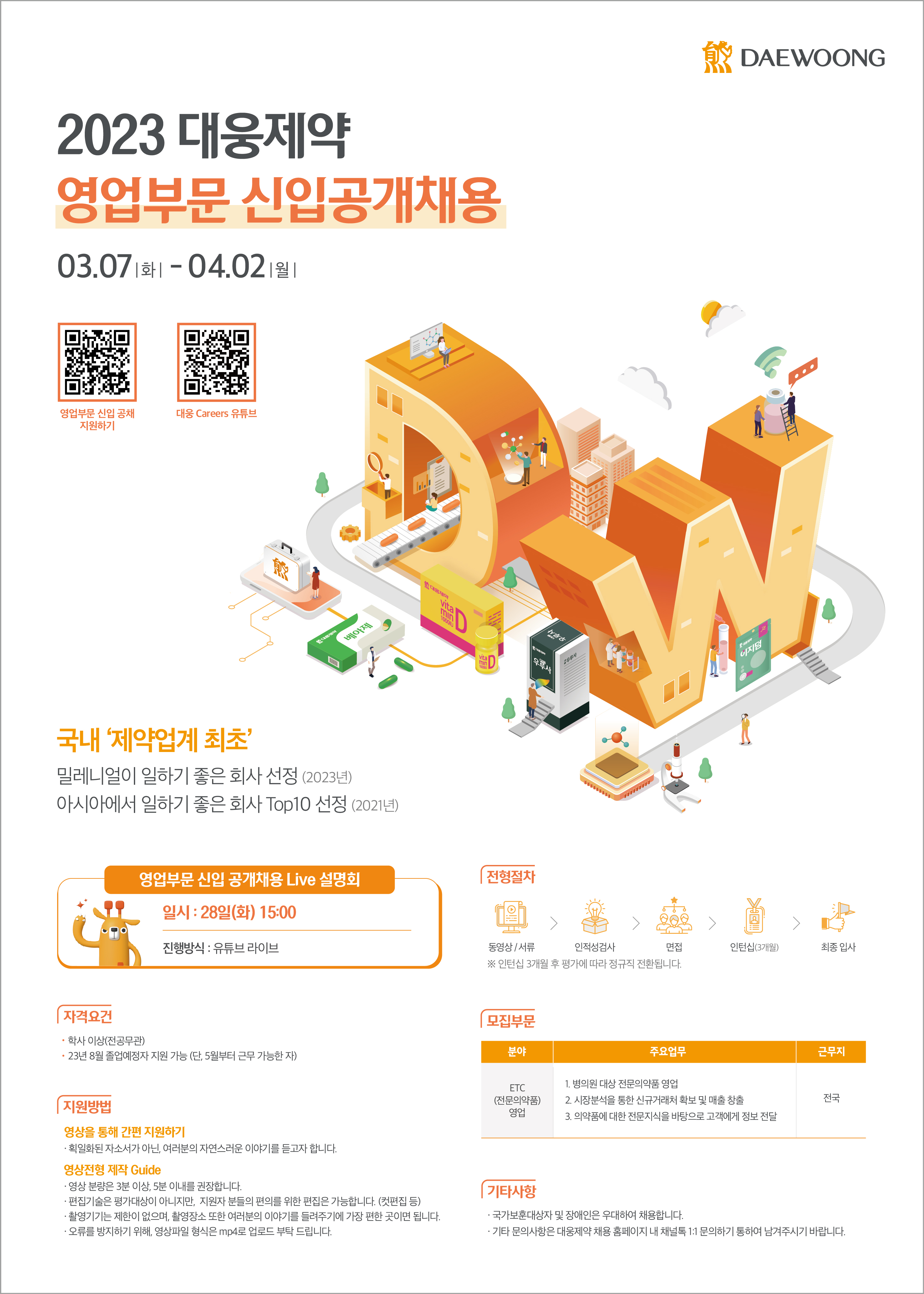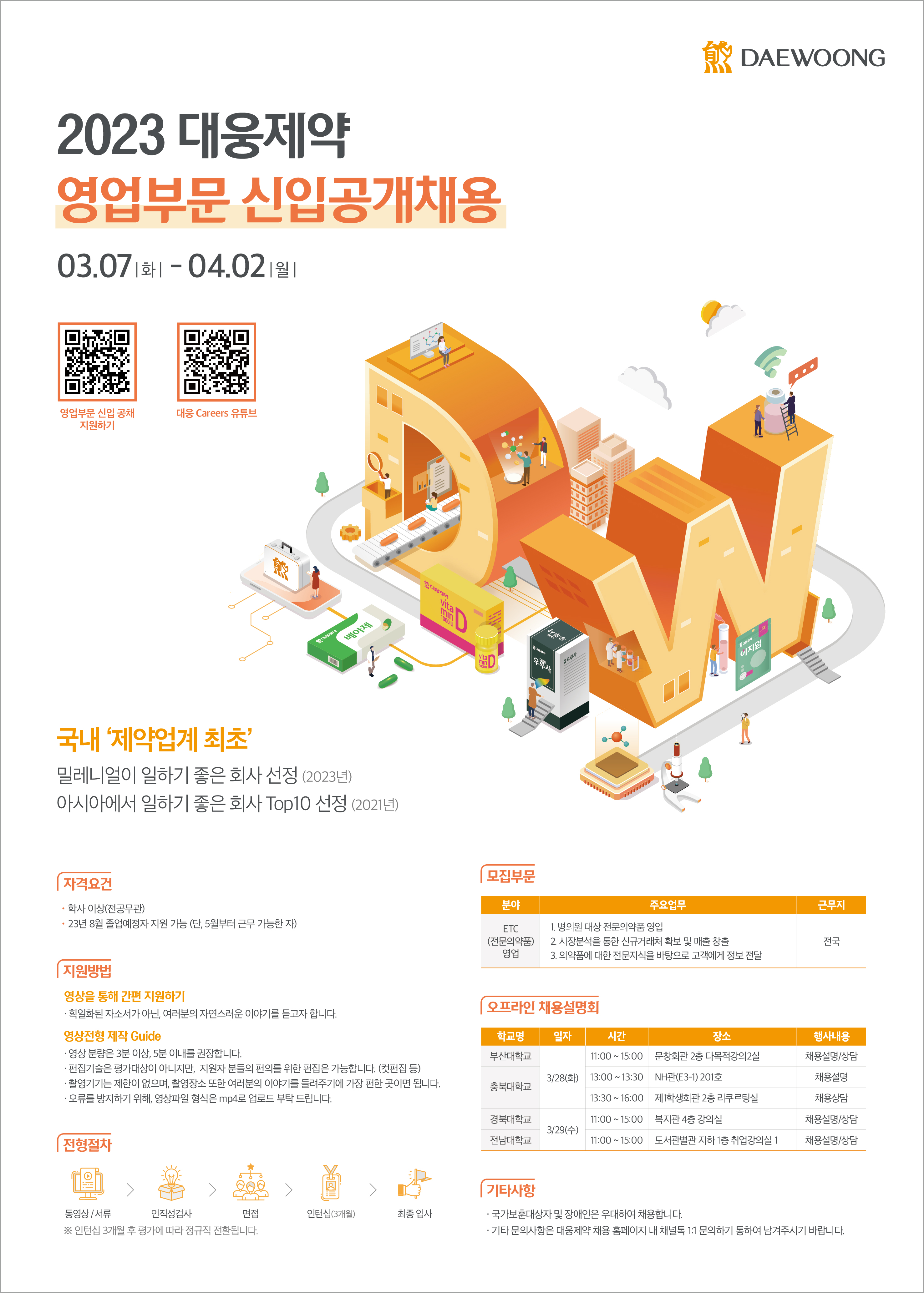 대웅제약 채용설명회 및 상담(3/28) 안내