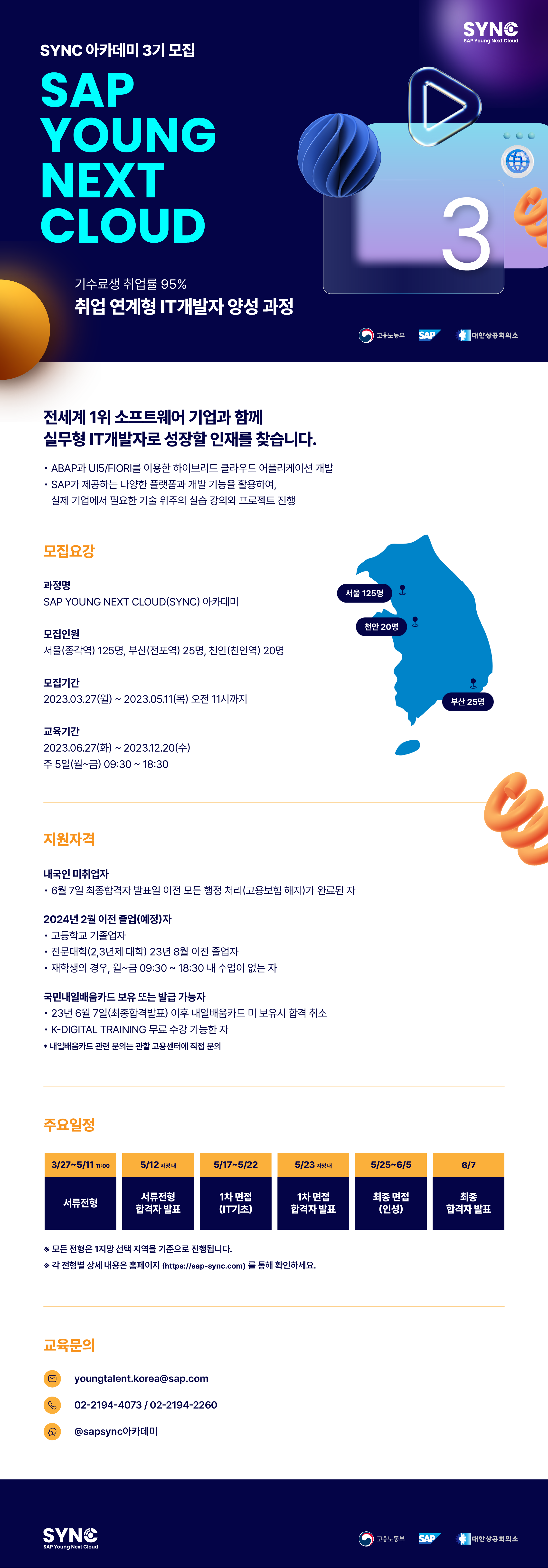 [SAP Korea] 취업연계형 IT개발자 양성 프로그램 'SYNC 아카데미' 3기 모집 (~23/5/11)