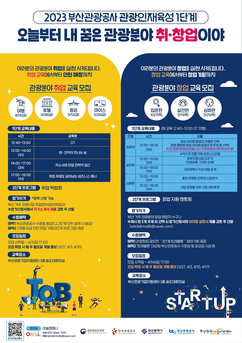 부산관광지원센터 2023 관광분야 취업 및 창업 지원 교육 프로그램