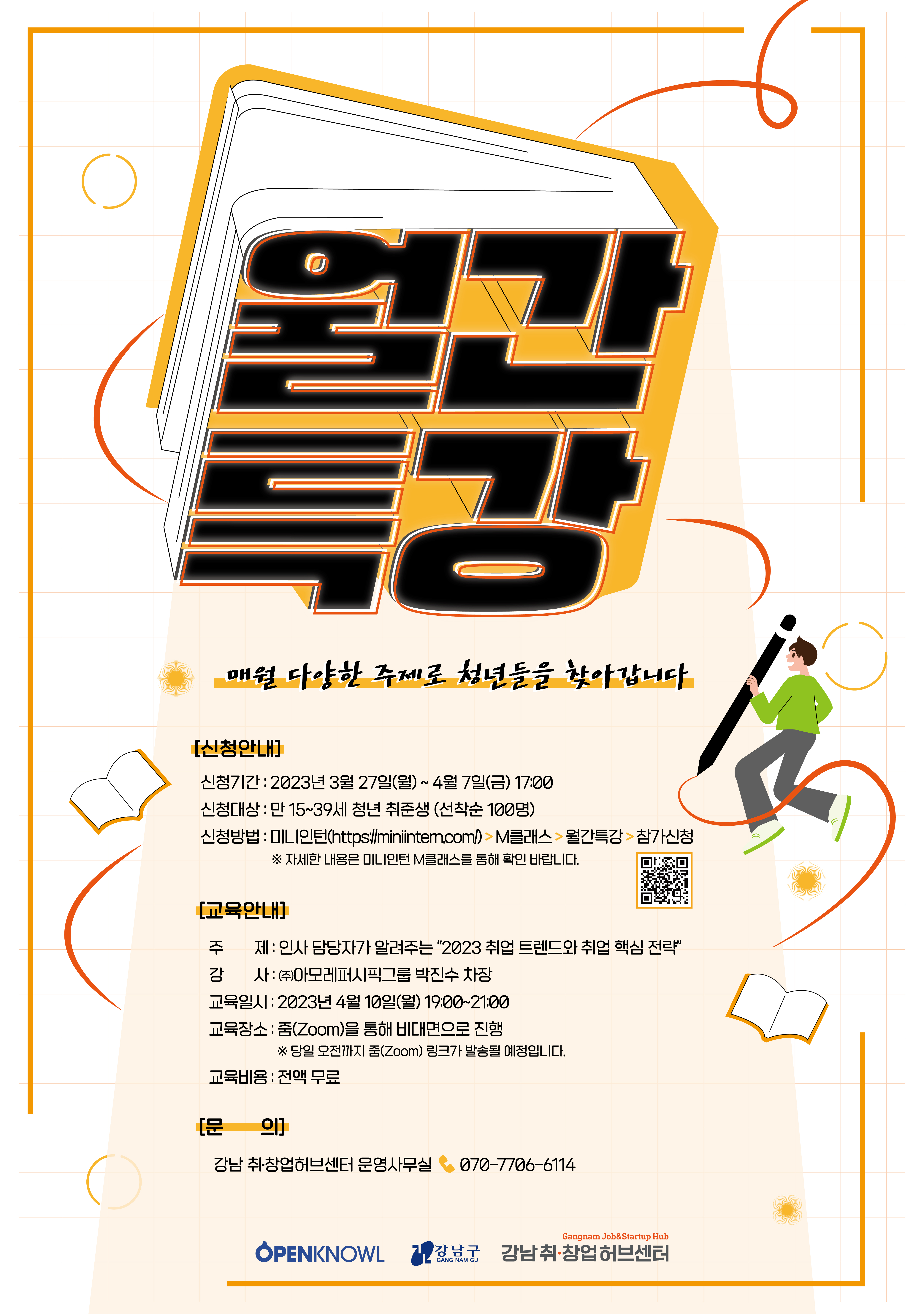 1) 월간특강 : 인사 담당자가 알려주는 “2023 취업 트렌드와 취업 핵심 전략”