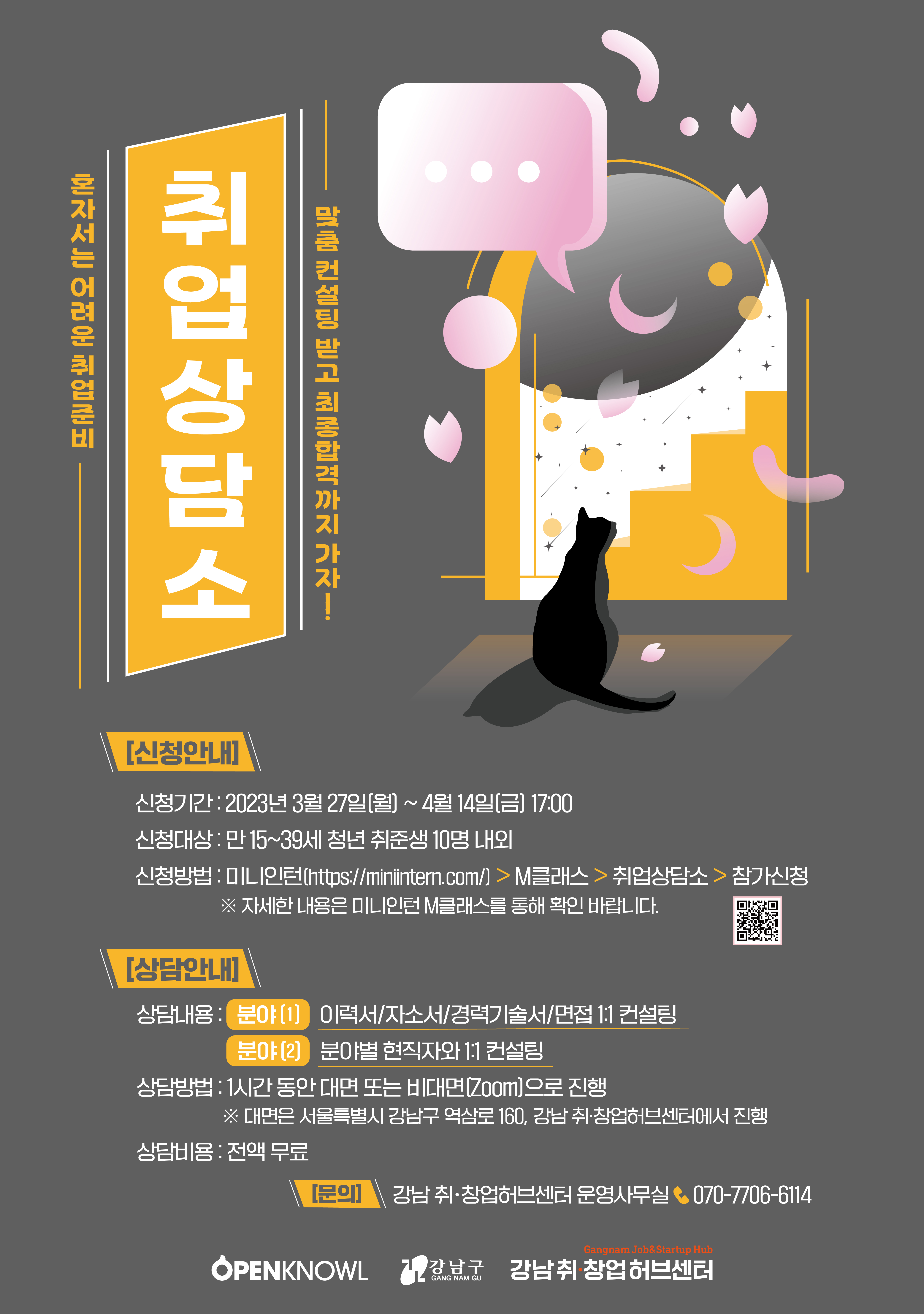 강남 취·창업허브센터 4월 취업 프로그램 모집 홍보 관련 안내