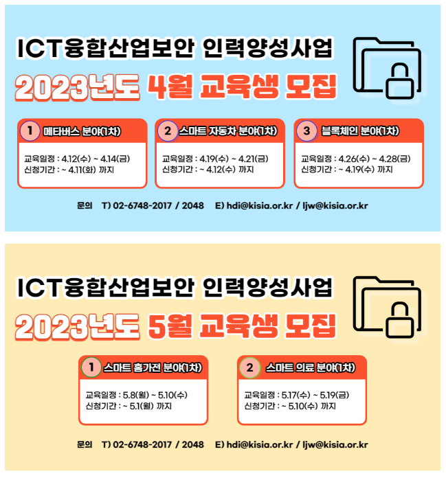 [KISIA] ICT융합산업보안 인력양성산업 4월, 5월 교육 안내 및 홍보