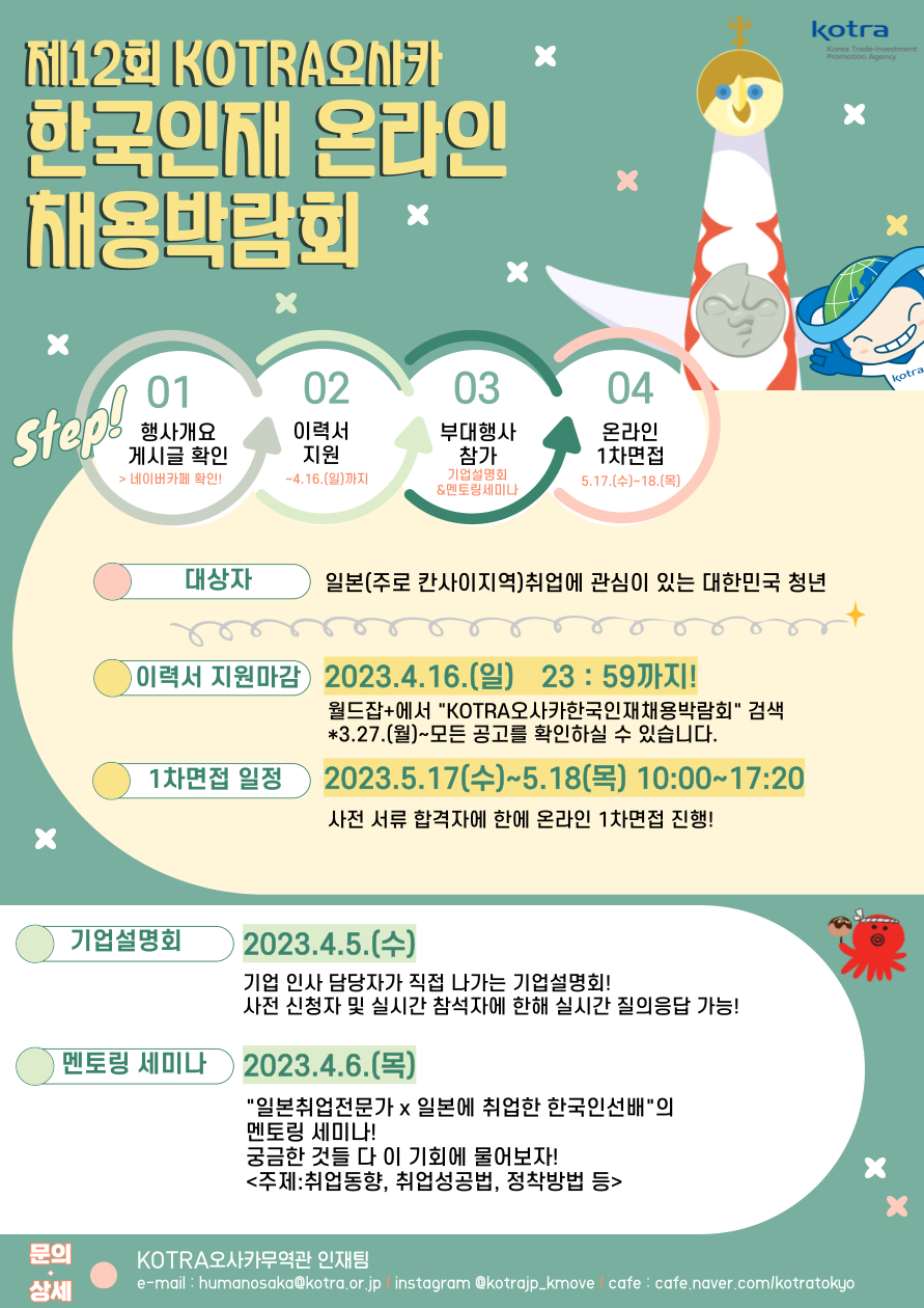 https://cafe.naver.com/kotratokyo/33561 - KOTRA 네이버 카페 제12회 KOTRA오사카 한국인재 채용박람회 안내문