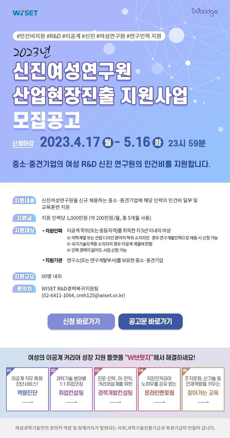 [WISET] 2023신진여성연구원 산업현장진출 지원사업 관련 안내