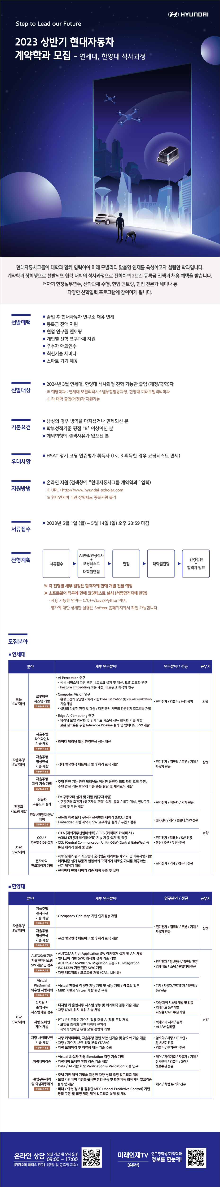 2023 상반기 현대자동차 계약학과 모집 - 연세대, 한양대 석사과정