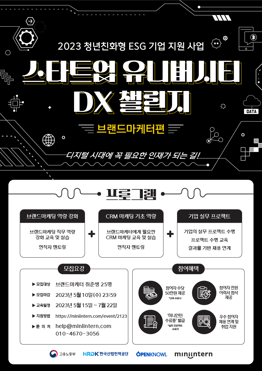2023 청년 친화형 기업 ESG 지원 프로그램 스타트업 유니버시티 DX 챌린지 브랜드 마케터 과정(~5/10)