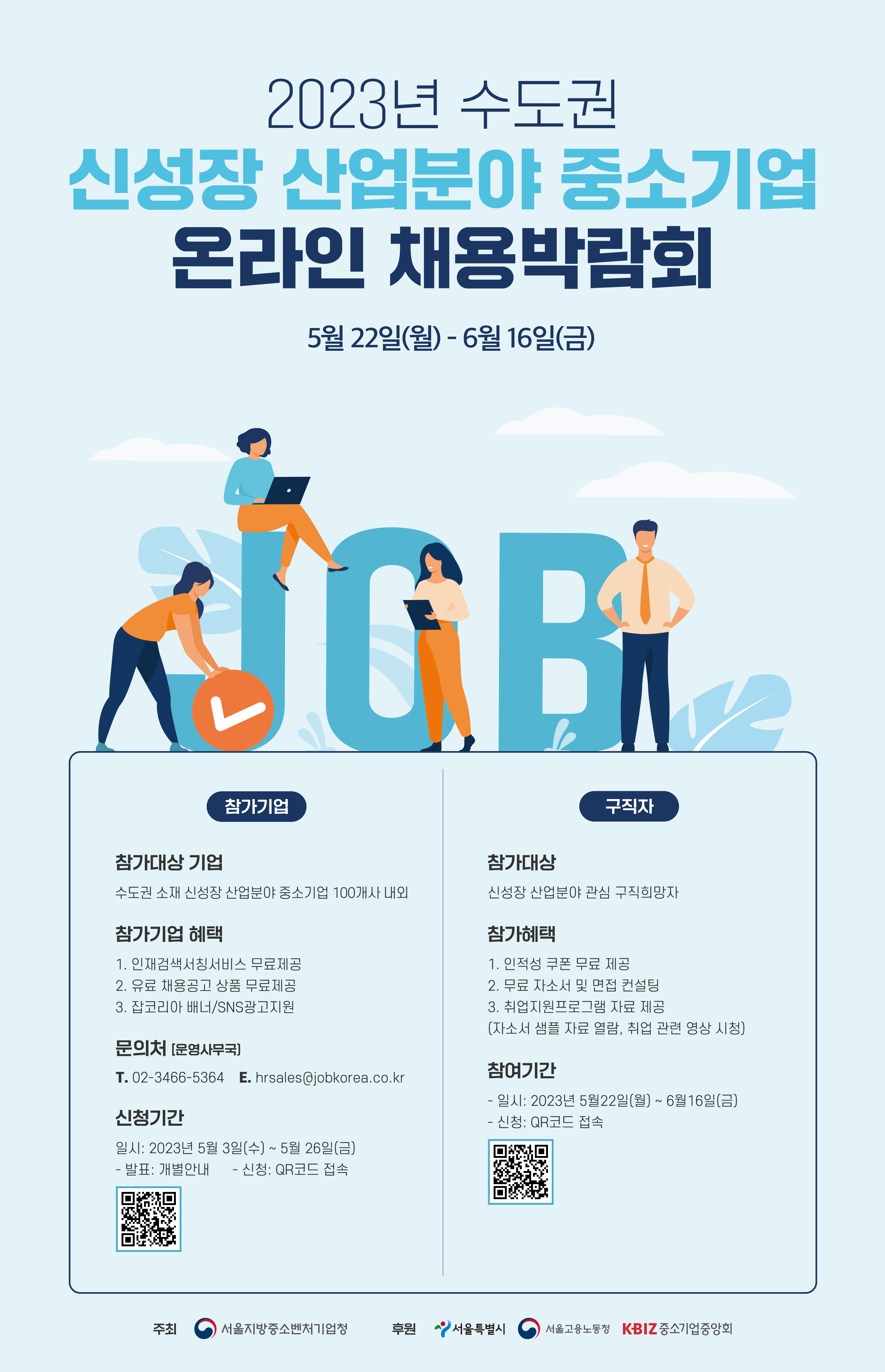 ‘2023 수도권 신성장 산업분야 중소기업 온라인 채용박람회’를 개최합니다.