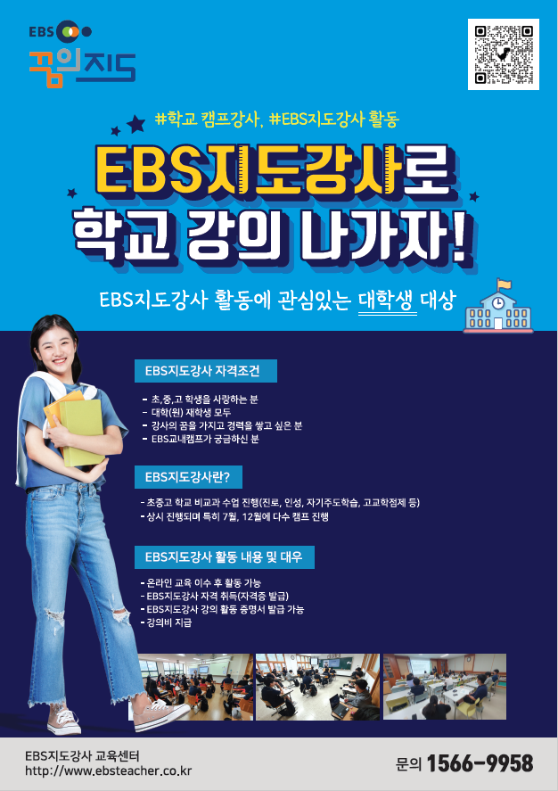 EBS지도강사 양성 프로그램을 아래와 같이 안내하니, 관심 있는 학생들의 많은 참여 바랍니다.