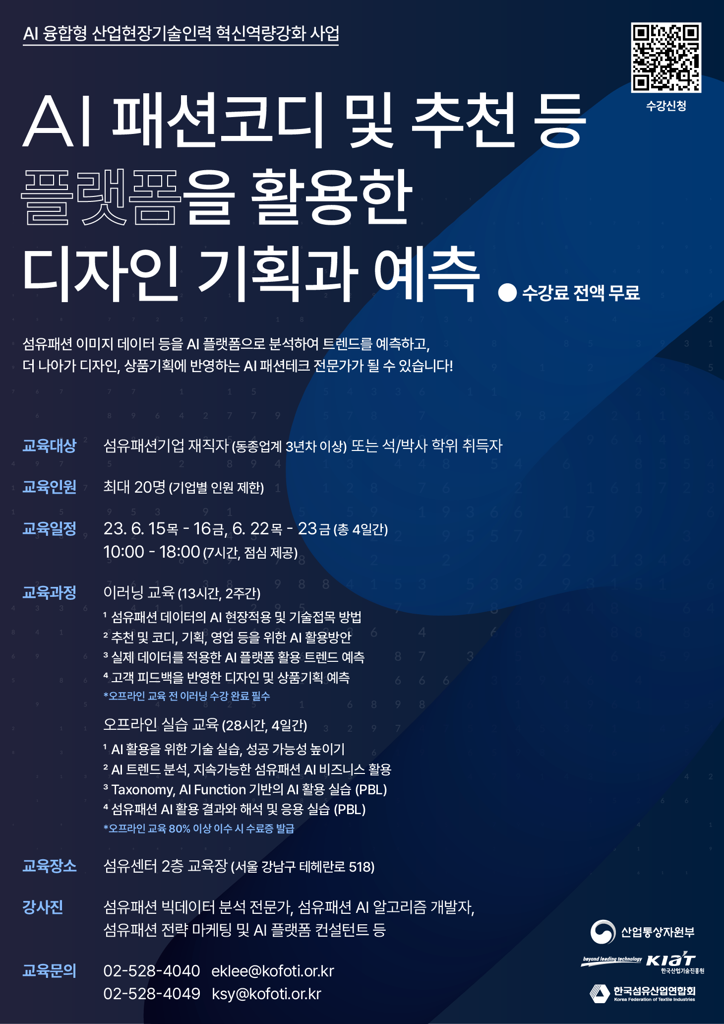 [한국섬유산업연합회] 'AI 패션코디 및 추천 등 플랫폼을 활용한 디자인 기획과 예측' 교육생 모집