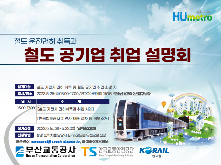 [부산교통공사 BTC아카데미] 철도 기관사 면허 취득 및 철도 공기업 취업 설명회 개최 관련 안내
