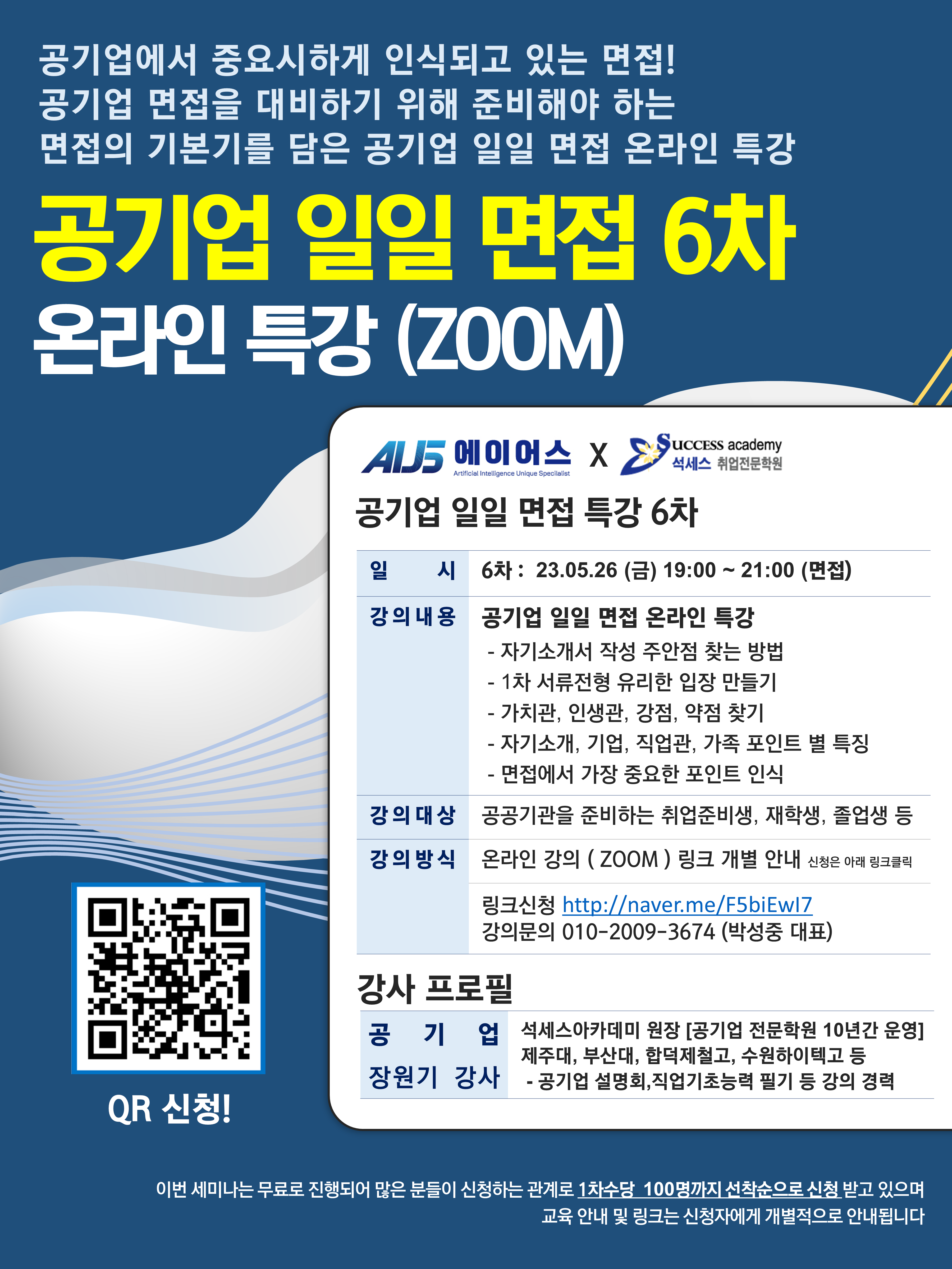 이번에 취업준비생들을 위해 공기업 일일면접 6차 온라인 특강을 진행합니다.