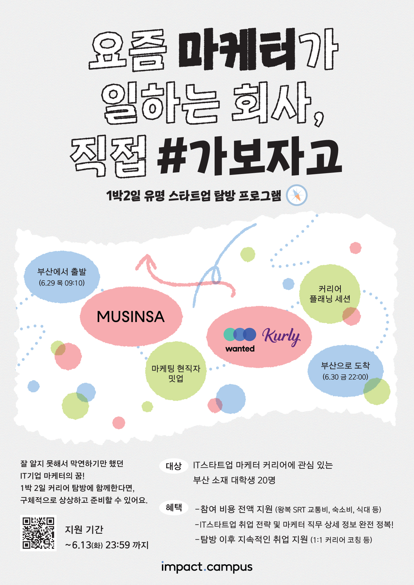 🙌무신사, 컬리, 원티드 사무실 직접 방문해보고 현직자 마케터의 생생한 이야기를 통해 IT스타트업 마케터 커리어를 이해하고 싶은 부산/광주 대학생을 모집합니다!