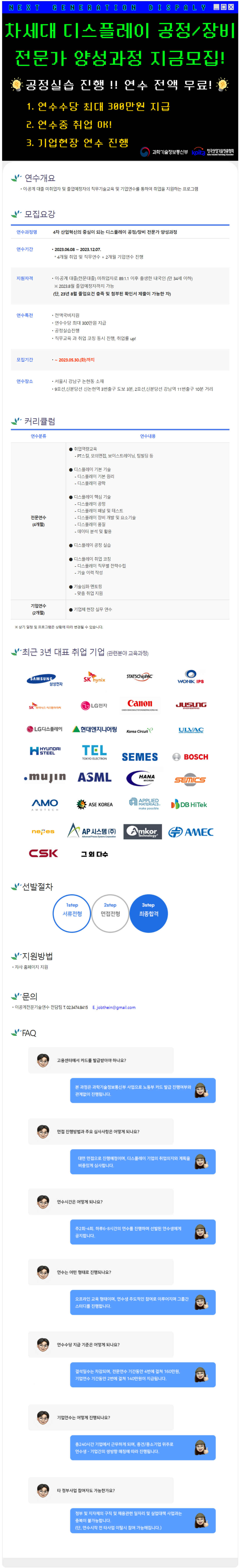 - 연수과정 : 4차 산업의 중심이 되는 디스플레이 공정/장비 전문가과정
