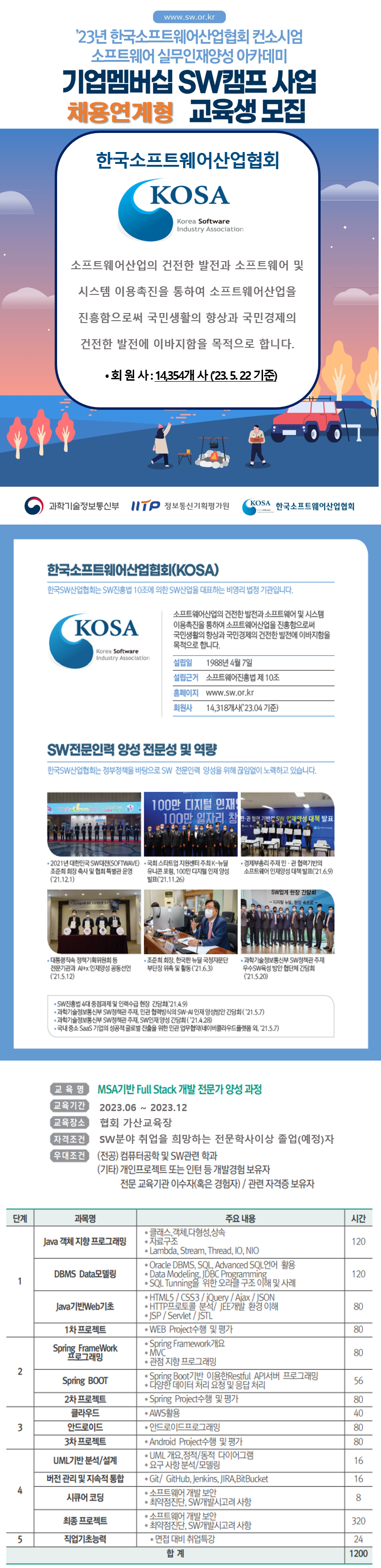 [한국소프트웨어산업협회] 2023년 6월 개강 채용연계형 교육과정 교육생 모집(협회 회원사 채용연계) 관련 안내