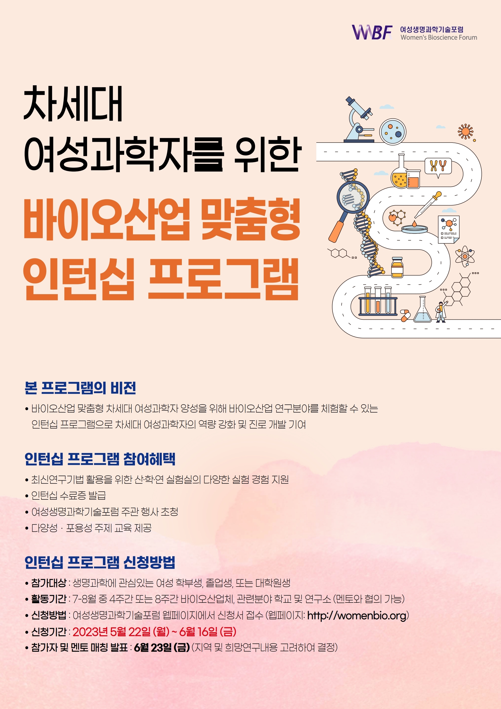 차세대 여성과학자를 위한 바이오산업 맞춤형 인턴십 프로그램 안내