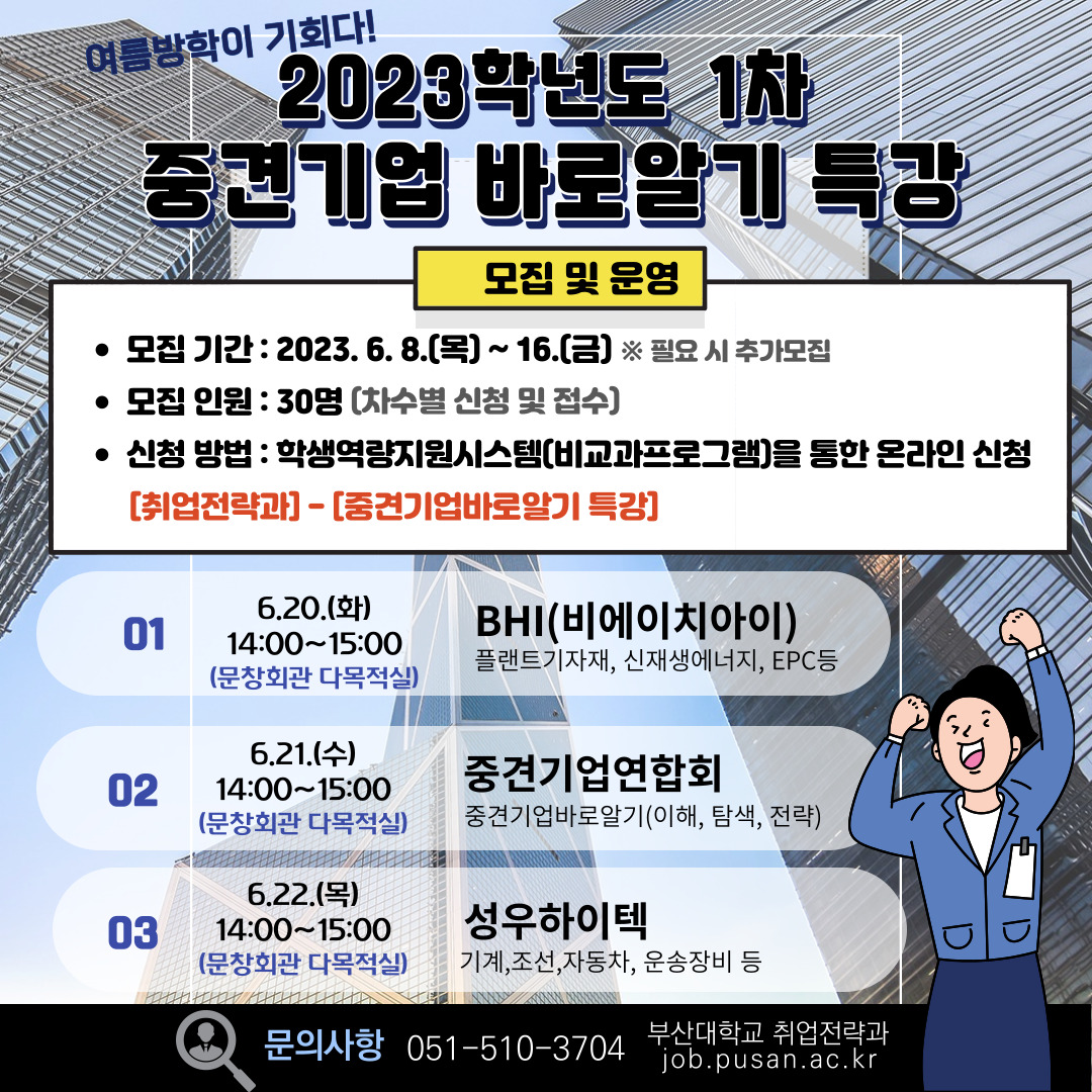 [취업전략과] 2023학년도 1학기 중견기업 바로알기 특강을 아래와 같이 실시하오니 많은 참여 바랍니다.