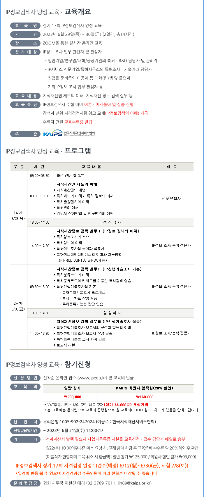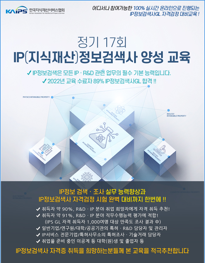 [KAIPS] 올해 마지막 IP정보검색사GL 양성교육 접수 안내 (~6/21)
