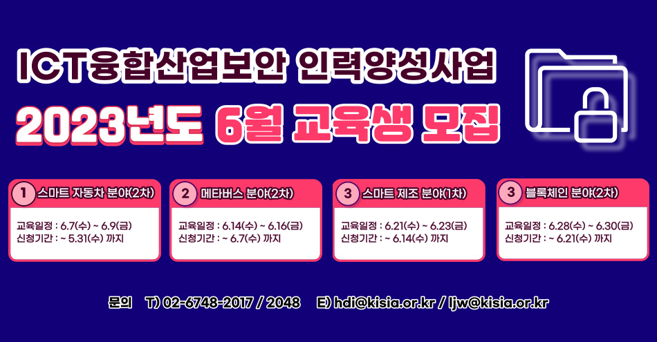 2023년도 ICT융합산업보안 인력양성사업 6월 교육생을 모집합니다