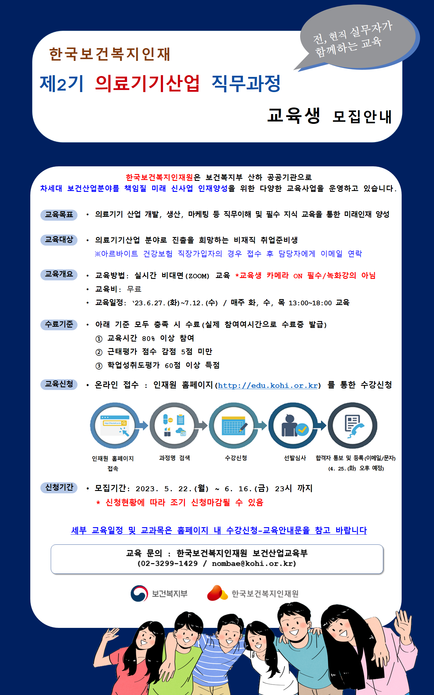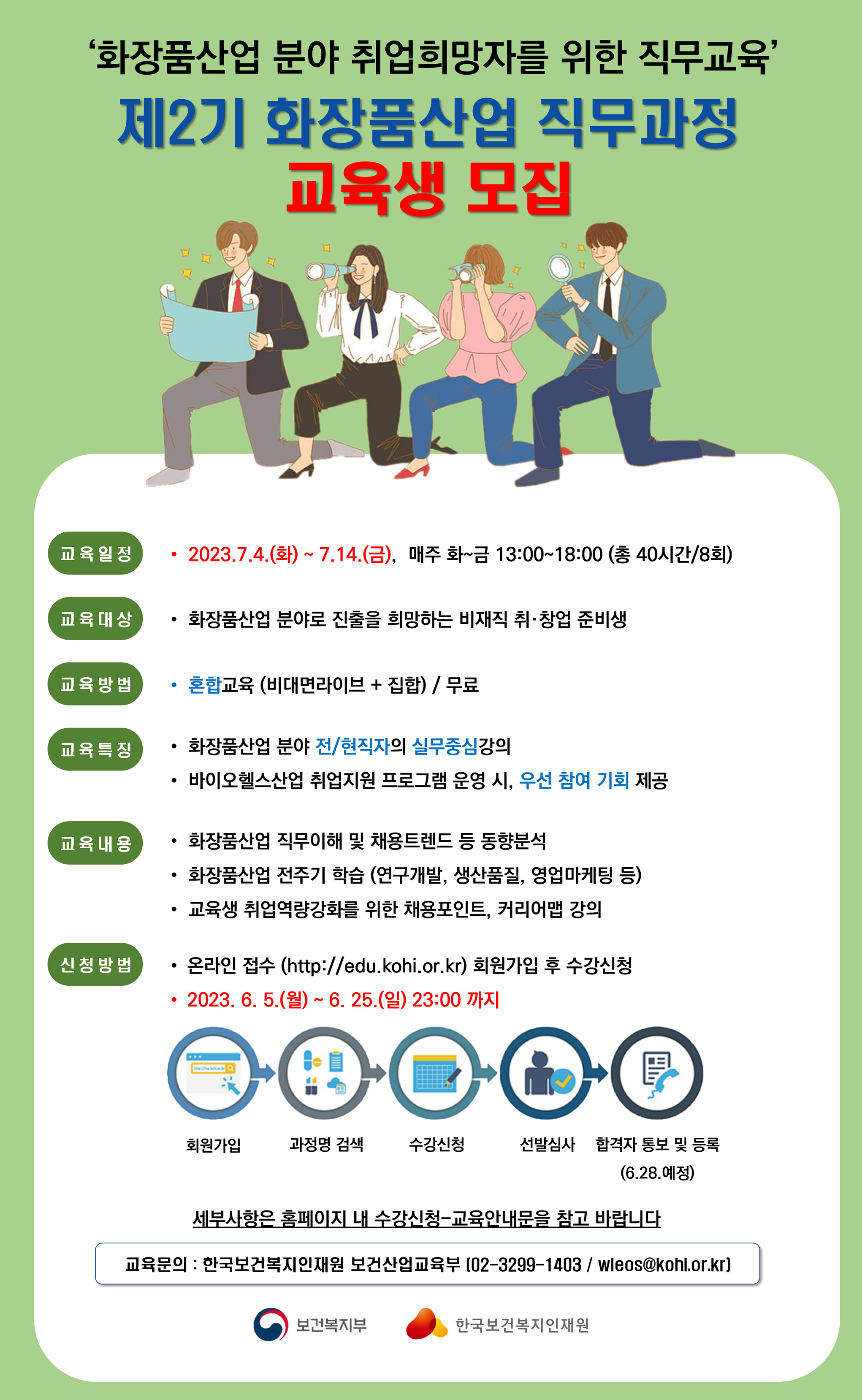 [한국보건복지인재원] 2023년도 제2기 화장품, 의료기기산업 직무과정 교육안내