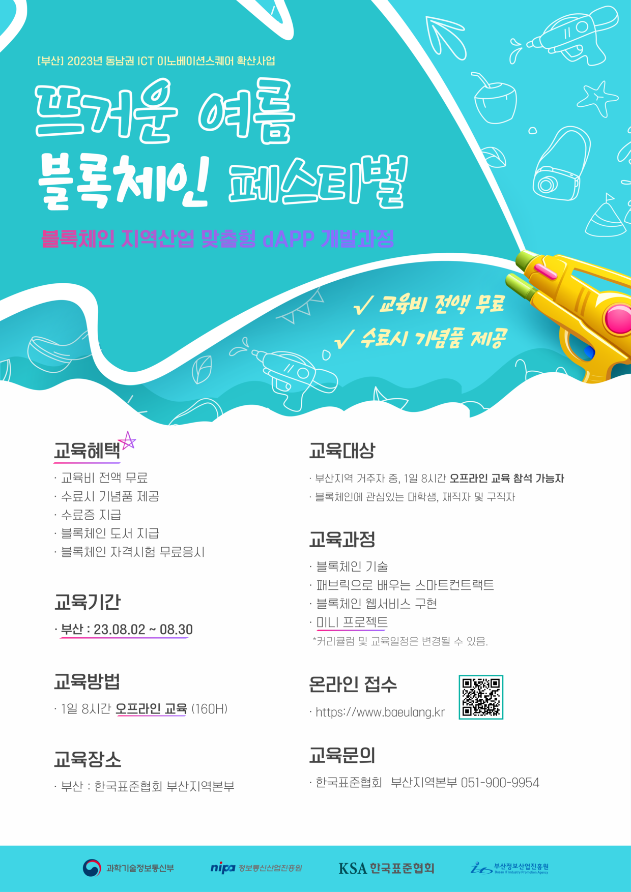 - 교육내용: 블록체인 기술 활용 서비스 개발 역량 확보 및 프로그래밍 요소 학습