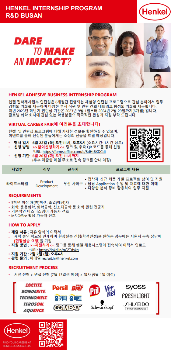 [Henkel] 2023년 하반기 헨켈 접착제사업부 인턴십 프로그램 및 채용설명회