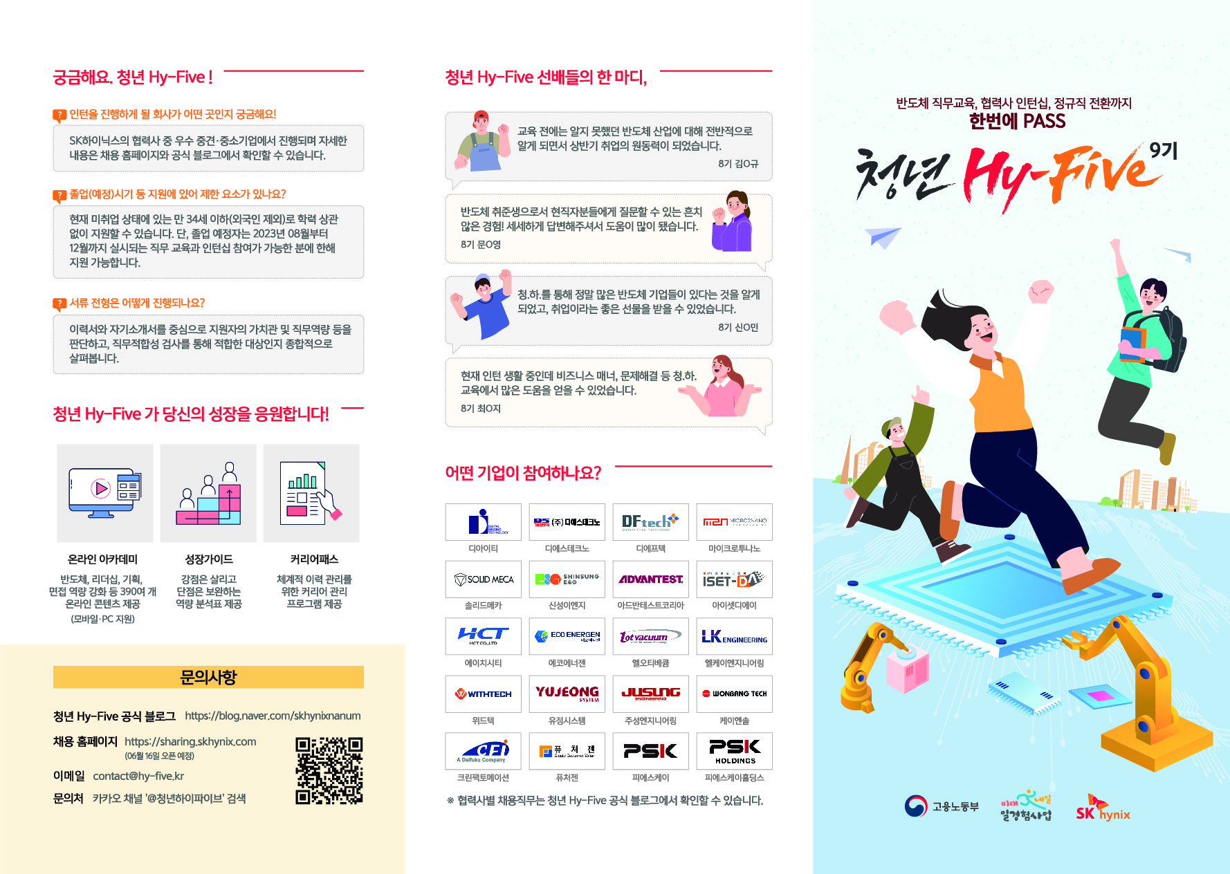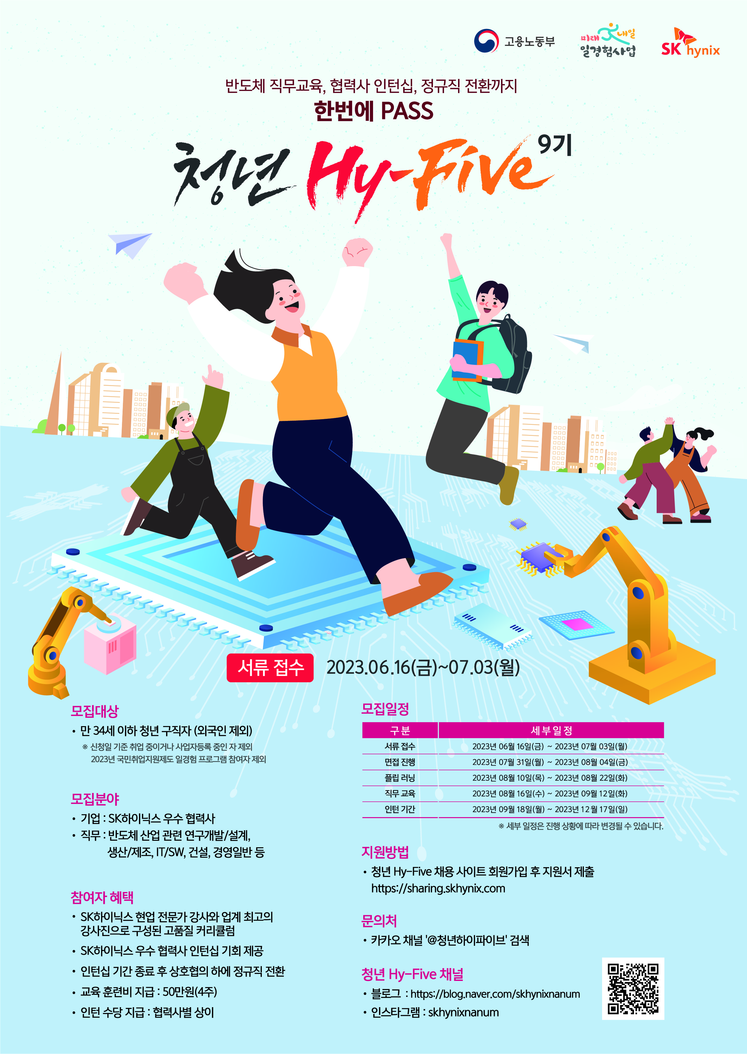 2023년 상반기 청년 Hy-Five 9기는 SK하이닉스㈜의 20여 개 우수 협력사가 참여신청 완료하였으며, 6월 16일(금)부터 서류지원을 시작합니다.