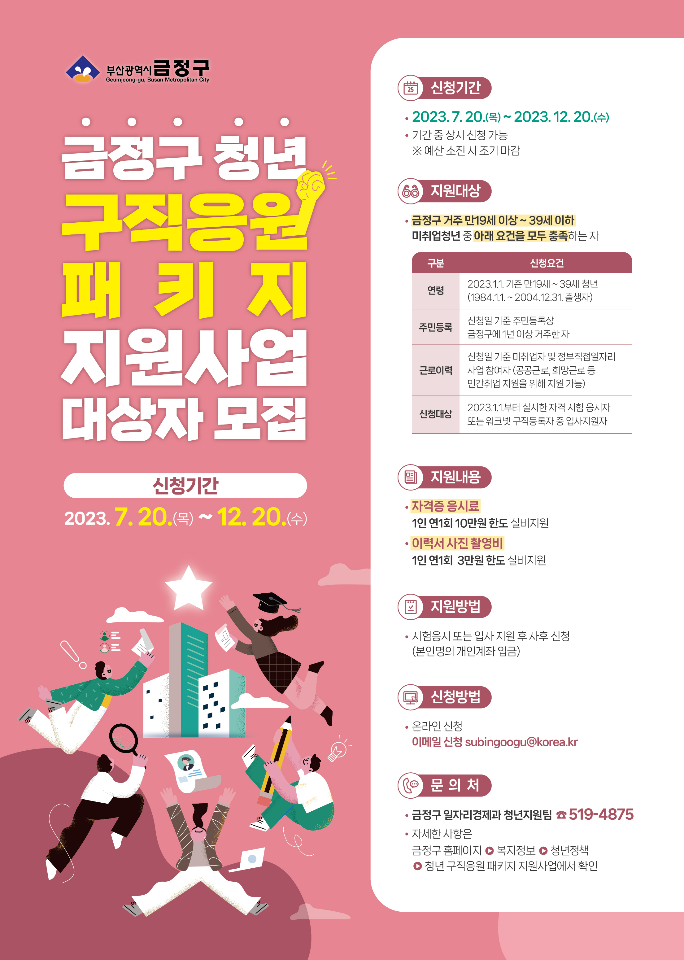 「2023 금정구 청년 구직응원 패키지 지원사업」 대상자 모집 공고