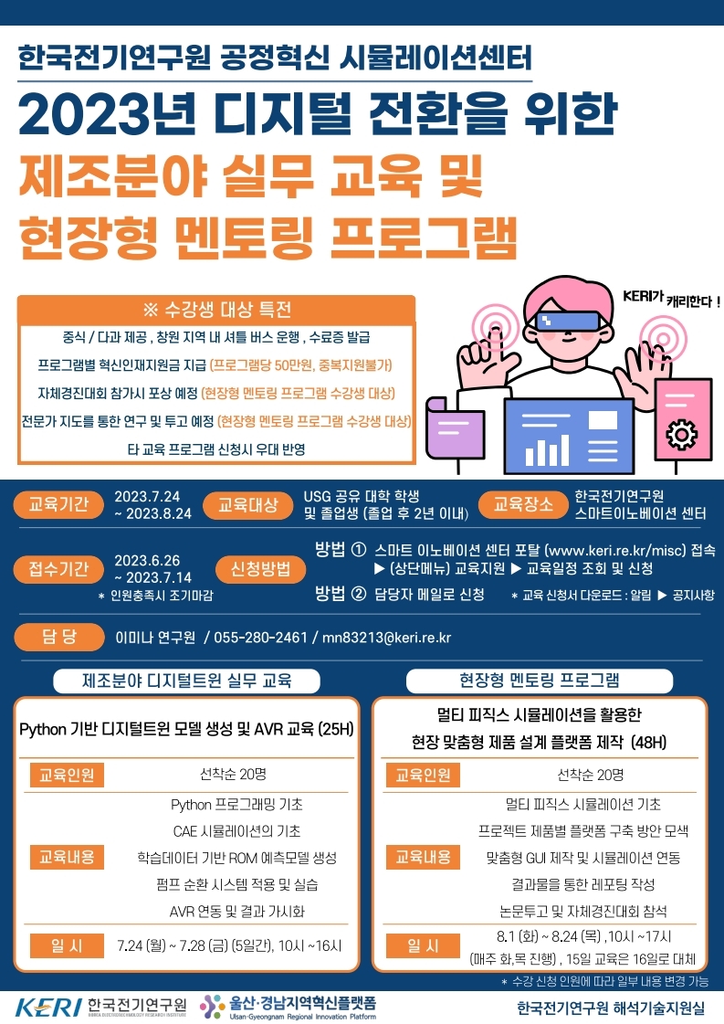 [한국전기연구원] 2023년 디지털 전환을 위한 제조분야 실무 교육 및 현장형 멘토링 프로그램 안내