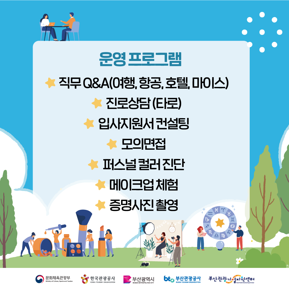 모의면접, 퍼스널 컬러 진단, 메이크업 체험, 증명사진 촬영 등