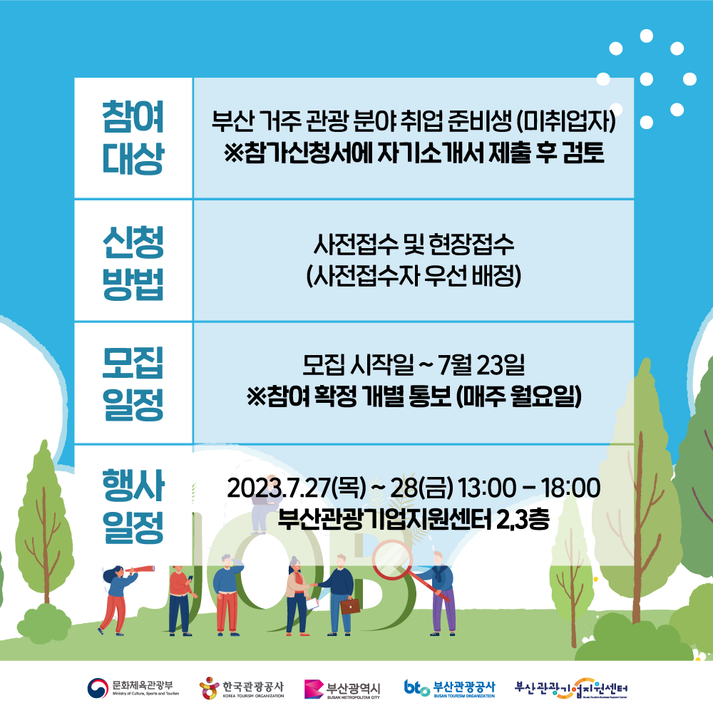 나. 참여대상: 관광업계 취업에 관심 있는 부산 거주자