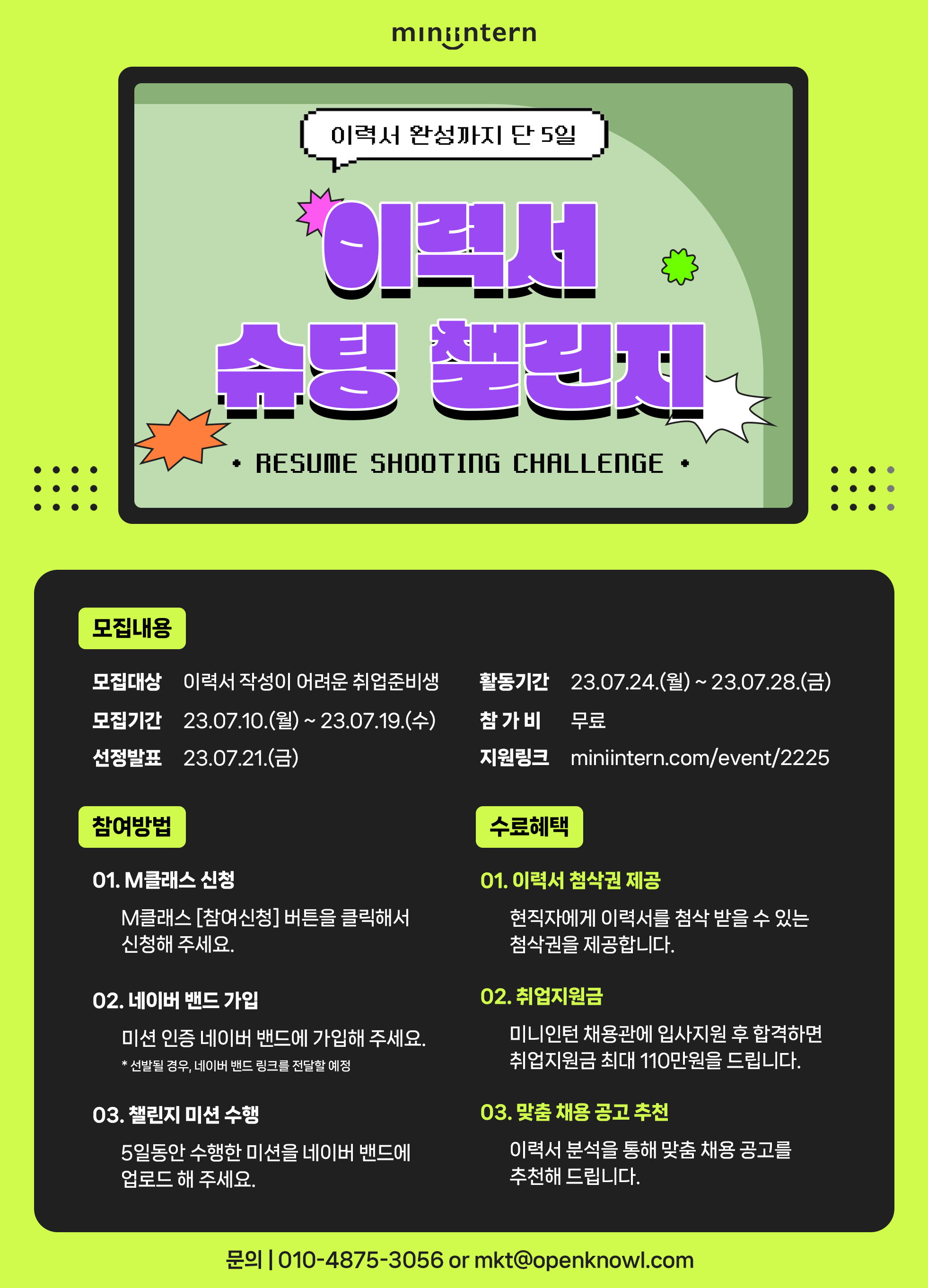 [오픈놀] 미니인턴 이력서 슈팅 챌린지 관련 홍보 안내