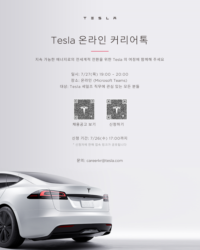 Tesla Korea에서 온라인 커리어톡을 진행할 예정입니다.