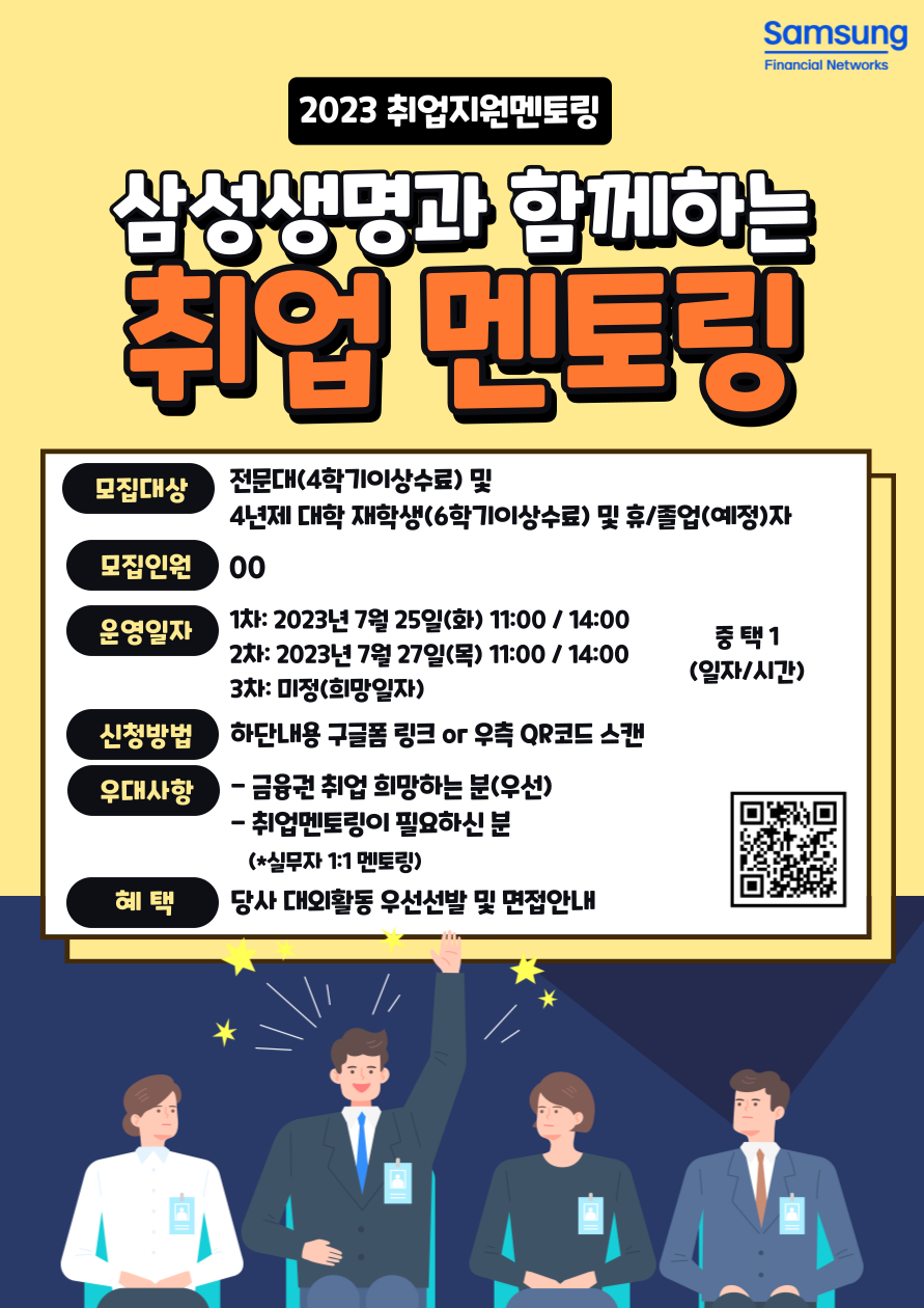 삼성생명에서 주관하는 현직자와의 취업 멘토링을 통해 '취뽀' 하세요!