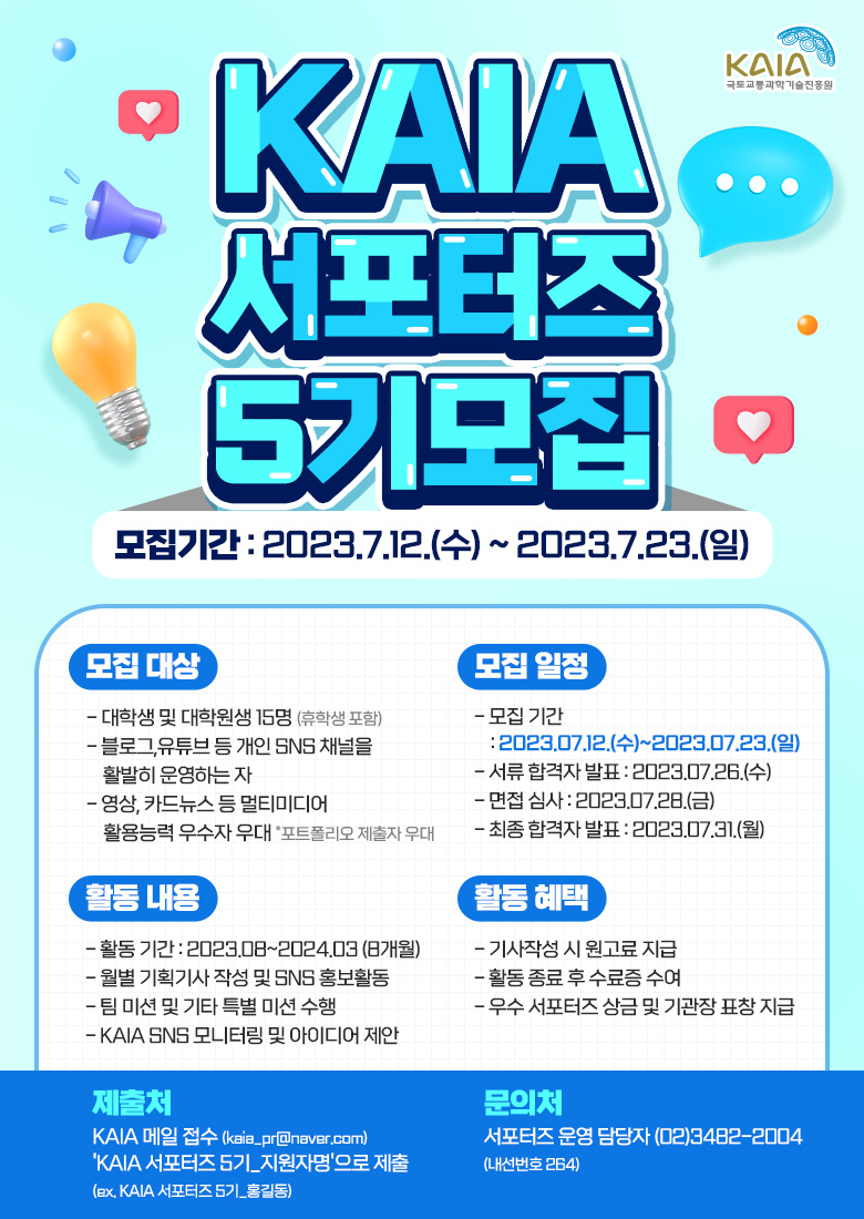 [국토교통과학기술진흥원] 2023년 KAIA 서포터즈 5기 모집 (~7/23)