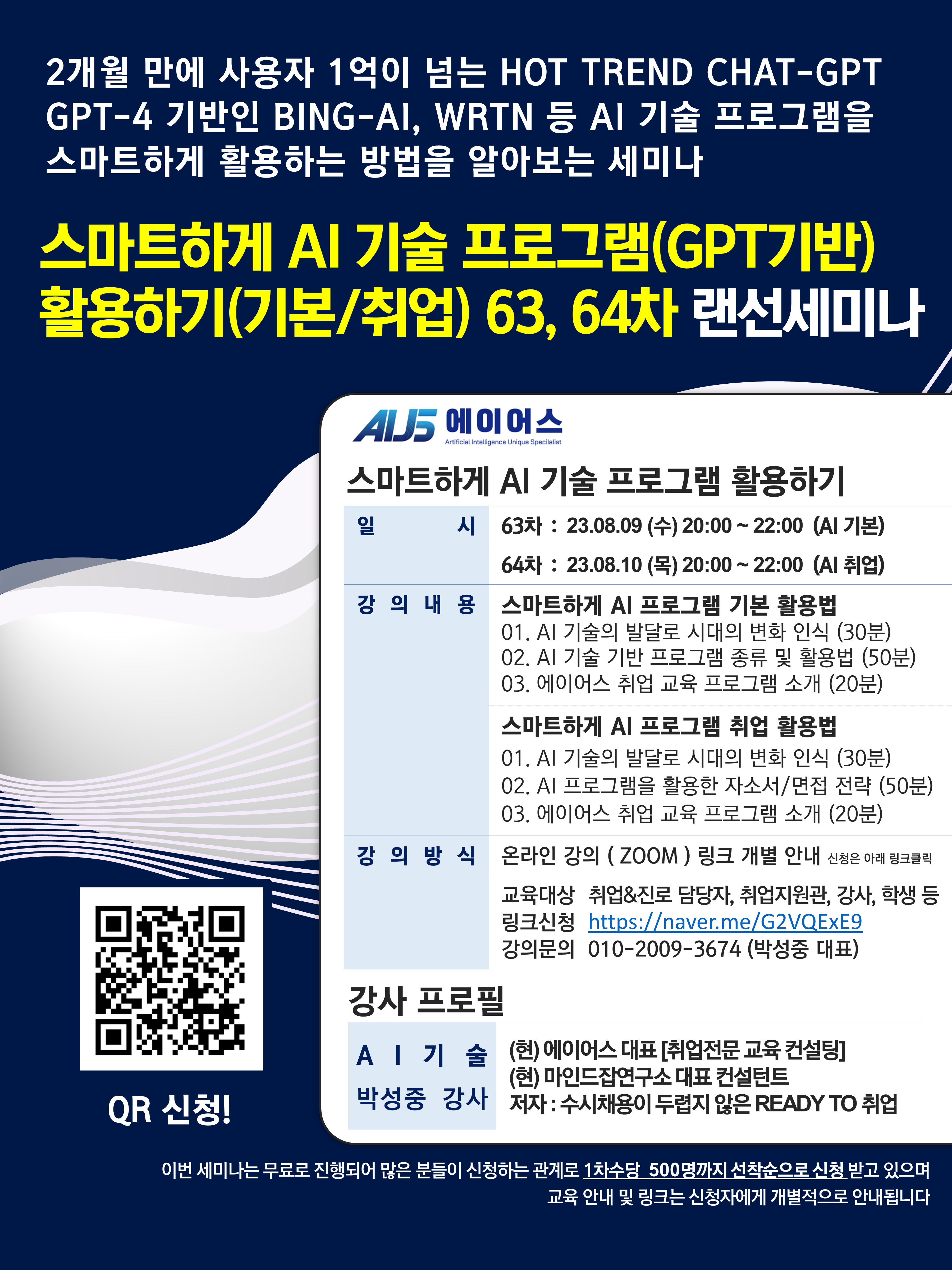 64차 : 23.08.10 (목) 20:00 ~ 22:00 (스마트하게 AI 프로그램 취업 활용법)