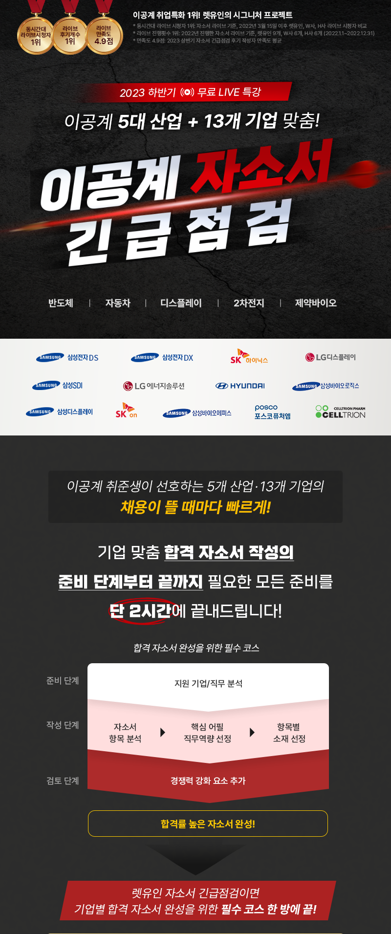 무료 <2023 하반기 이공계 자소서 긴급점검> 행사를 개최합니다.