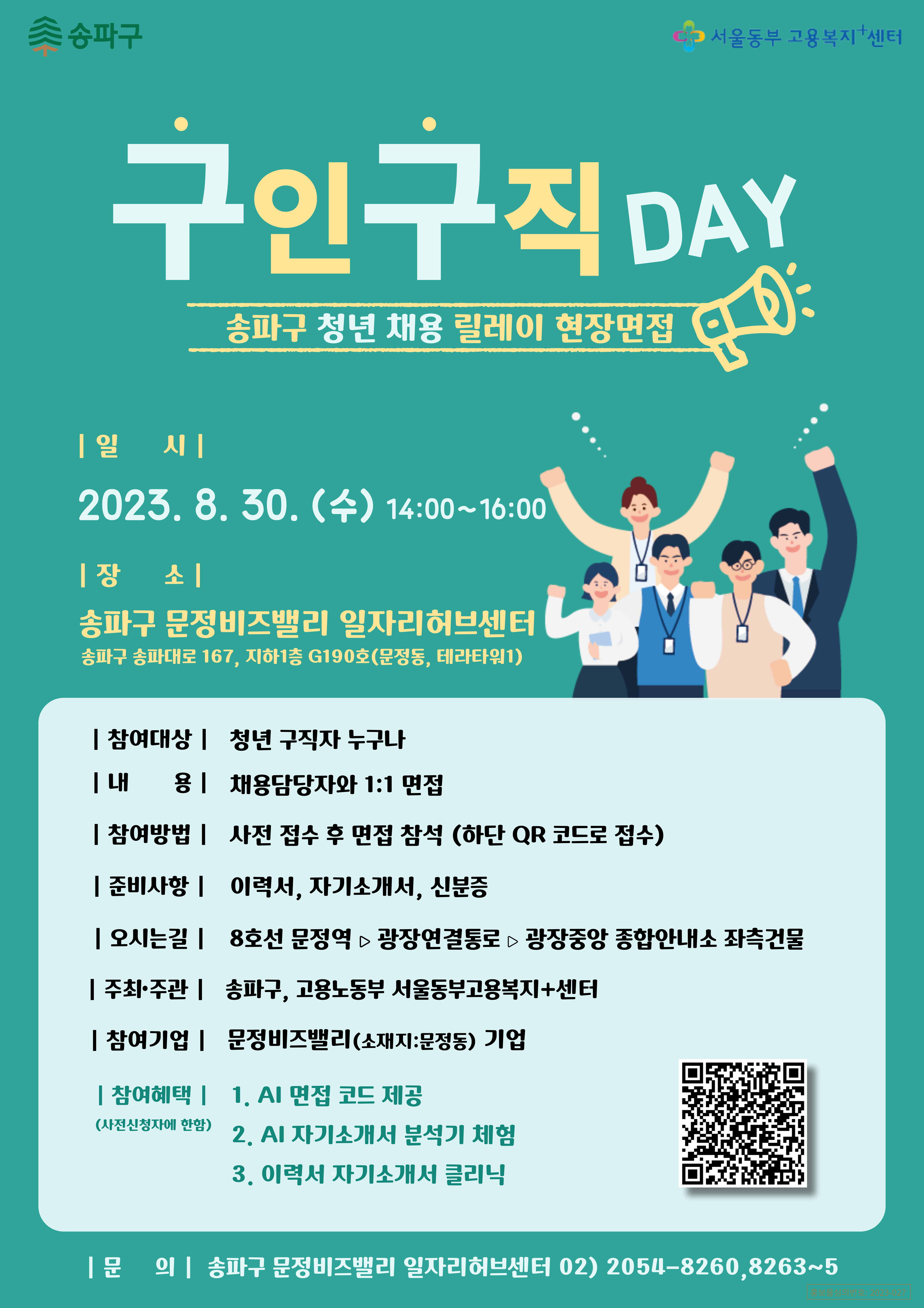 □ 제 목: 송파구 청년 채용 현장면접 8월 릴레이구인구직DAY