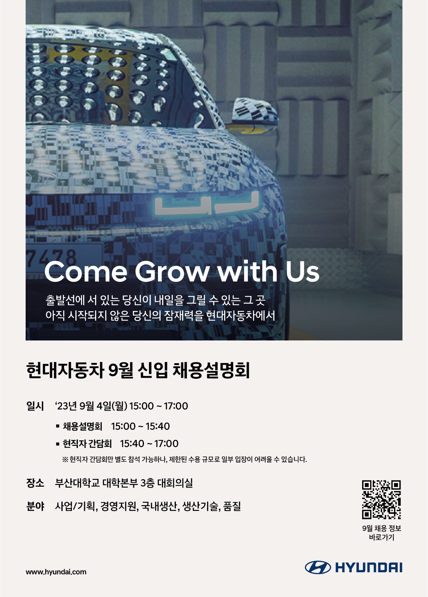 현대자동차 2023 하반기 채용설명회 일정을 아래와 같이 안내드리니, 관심 있는 학생들의 많은 참여 바랍니다.
