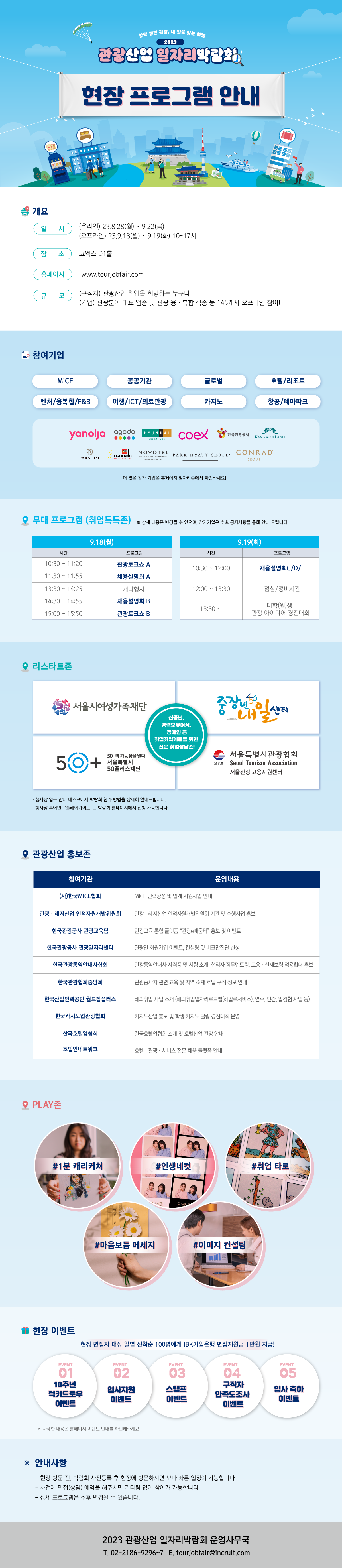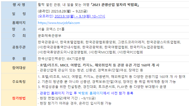 [2023 관광산업 일자리박람회] 역대 최다 기업 참가! (9.18~19 코엑스 D1홀)