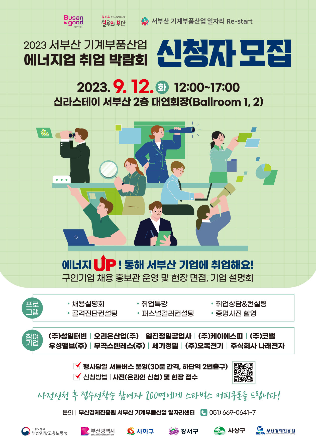 문의처 : (재)부산경제진흥원 일자리지원단 옥주윤 ☎ 051)669-0635