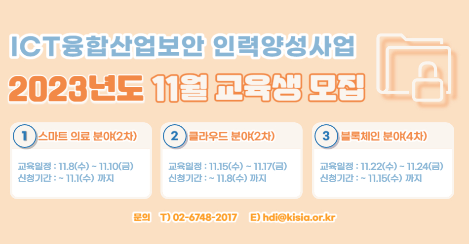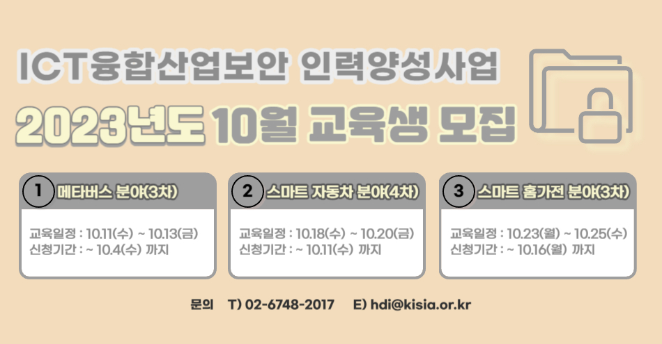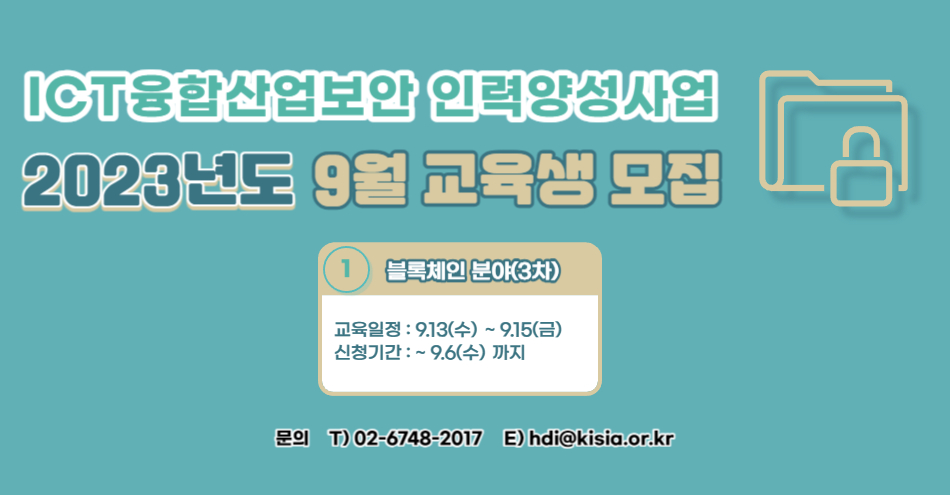 2023년도 ICT융합산업보안 인력양성사업 9,10,11월 교육생을 모집합니다